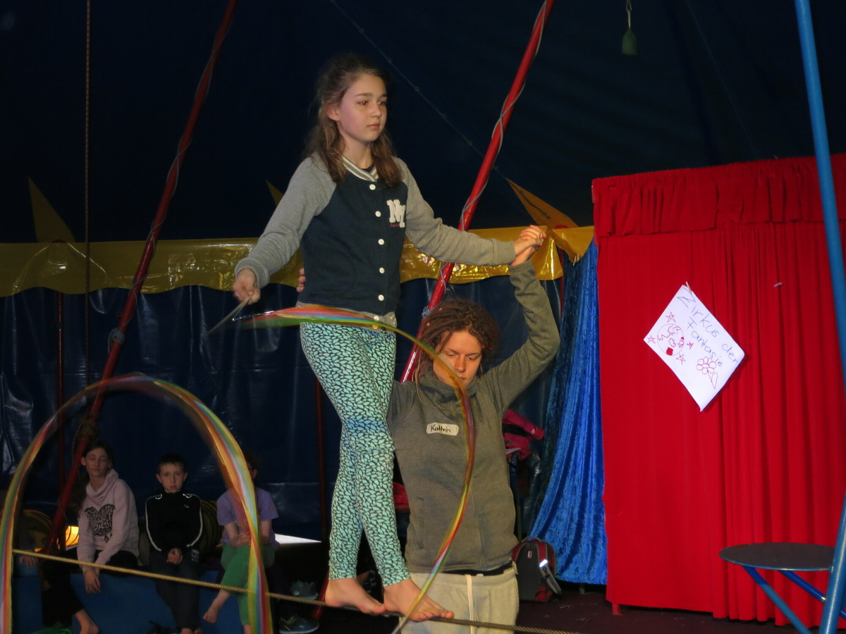 Burkhard Salzer (Eckarts), Laura Klüpfel (Thüngersheim), Alisa Pavlin (Züntersbach), Lisa Weissenberger (Fuchsstadt), Katharina Werth (Fulda), Miriam Kress (Miltenberg), Nadine Schmitt (Hünfeld), Julia Kappes (Würzburg), Kathrin Schneider (Gießen), Vera Maier (Würzburg), Tobias Zimmermann (Bastheim), Valentin Scholl (Bad Neustadt) und Hannah Nagel (Würzburg) lernten in der achttägigen Ausbildung die verschiedenen Zirkustechniken wie Drahtseil, Fakir, Diabolo oder Trapez kennen und erfuhren einiges über die erlebnispädagogische Wirkungsweise der Zirkusarbeit. Nach einer Basisausbildung an einem Wochenende im März galt es für die neuen Zirkustrainer in dieser Woche vormittags die Trainingsstunden zu planen, die am Nachmittag mit Kindern aus der Bad Brückenauer Umgebung durchgeführt werden. „Uns ist es sehr wichtig, den neuen Zirkustrainern von Anfang an Praxiserfahrung in der Manege zu geben“, erklärt die für die Ausbildung zuständige Bildungsreferentin Angelika Martin. So werden die zukünftigen Zirkustrainer gleich auf Herz und Nieren geprüft und erkennen die Fallstricke im pädagogischen Alltag.