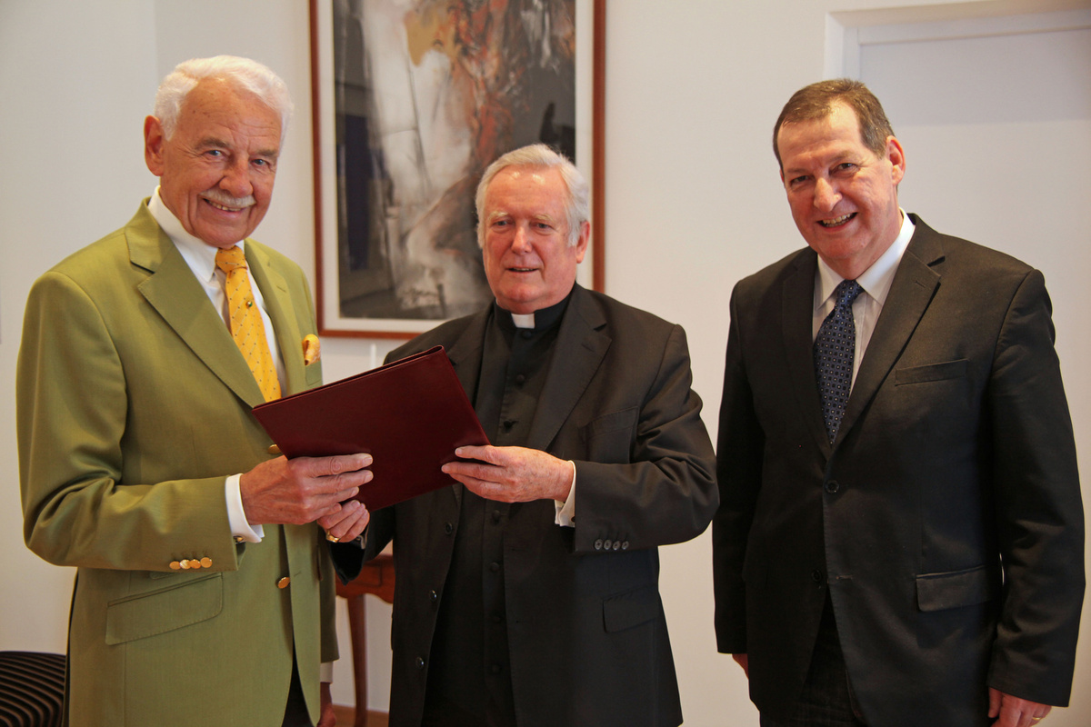 Eine Spende über 82.000 Euro hat der Unternehmer Nikolaus Knauf, Mitinhaber der Knauf KG in Iphofen, an Bischof Dr. Friedhelm Hofmann überreicht. Mit der Spende soll die Ausstattung der Labor- und Krankenpflegeschule in Litembo im Partnerbistum Mbinga unterstützt werden.