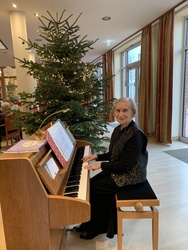 Im Advent feierte Pastoralreferentin Maria Garsky im Seniorenpflegeheim Domicil Hennebergstraße einen Gottesdienst zum Adventslied "Maria durch ein Dornwald ging". Neben der Inhaltlichen Gestaltung, die immer besonders für demenziell Erkrankte abgestimmt ist, berührte die Teilnehmenden vorallem auch die musikalische Gestaltung durch Maria Vorndran am Klavier, die selbst im Haus wohnt.