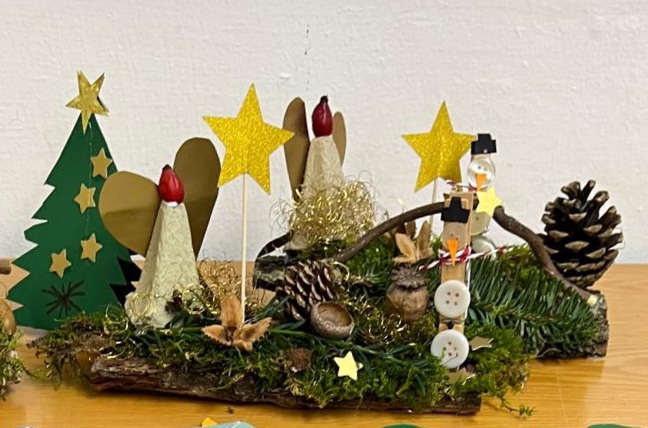 Nach dieser wunderschönen Weihnachtsgeschichte bastelten die Mädchen und Buben eine Winterlandschaft natürlich mit einem kleinen Engel.