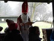 Am Ende des Spaziergangs erreichten wir die Hütte am Waldspielplatz. Dort verteilte der Bischof Nikolaus kleine Geschenke und der Nachmittag klang bei Tee und Lebkuchen in gemütlicher Runde aus.