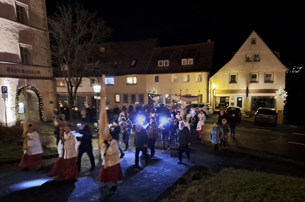 Am 8. Dezember begeht die Kirche das „Hochfest der ohne Erbsünde empfangenen Jungfrau und Gottesmutter Maria“. Seit je her ist dieser Tag in Fladungen ein gelobter Feiertag. Bereits frühmorgens um 6 Uhr spielen junge und alte Musikerinnen und Musiker das Marienlied „Ave Maria klare“ von der Brüstung des Kirchturms. Besonders stimmungsvoll war auch in diesem Jahr die Lichterprozession im Anschluss an die Eucharistiefeier.