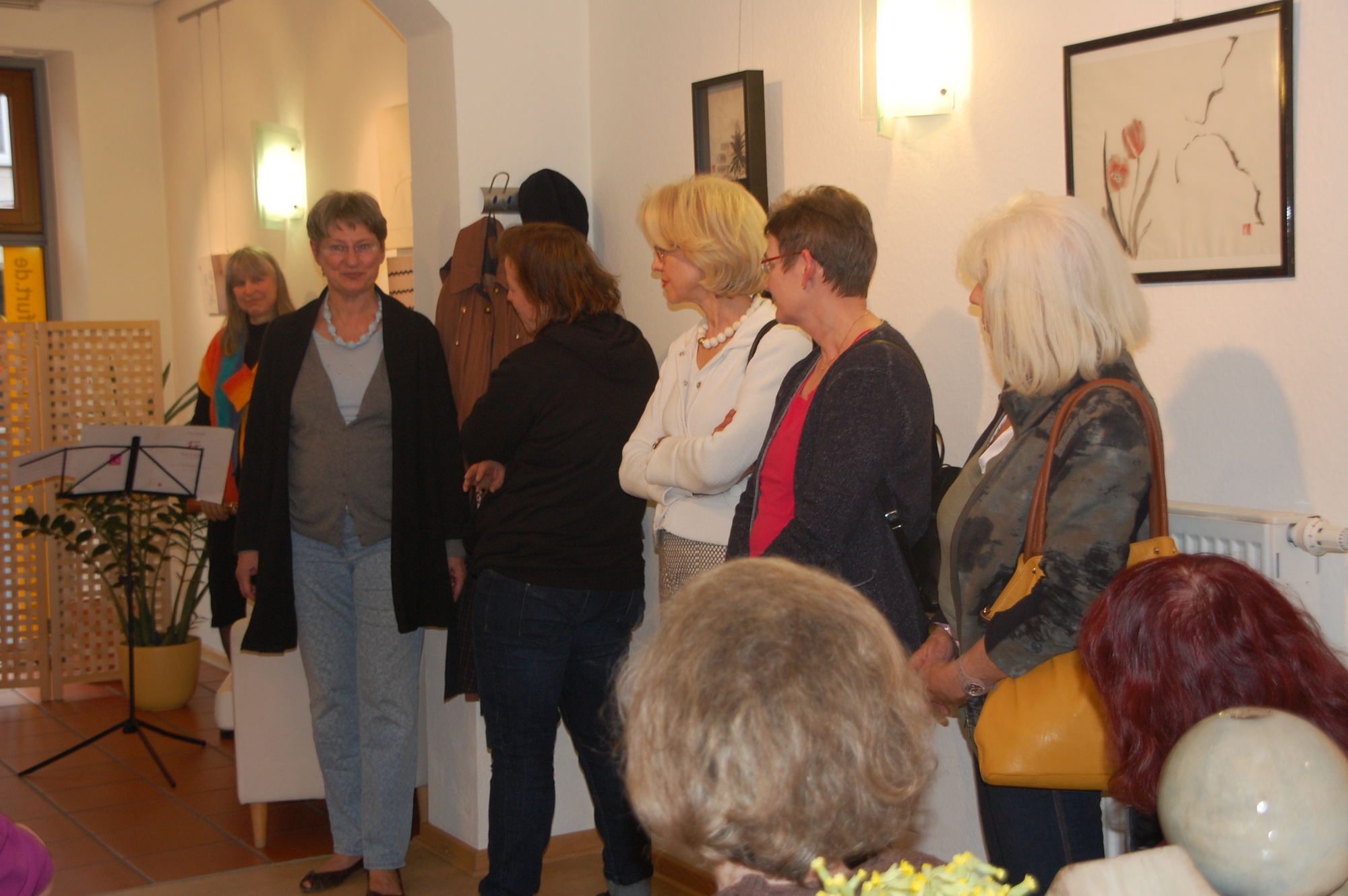 Robert Bundschuh, der Leiter des GesprächsLadens, begrüßte eine große Zahl von interessierten Gästen und gab seiner Freude über diesen "japanischen Abend" Ausdruck. Augenzwinkernd betonte er, die Entscheidung "Tee statt Sekt" zur Vernissage werde wettgemacht durch japanische Weisen (z.B. das "Kirschblütenlied") aus der Flöte von Irma Vöhringer, durch vielerlei Zen-buddhistische Geschichten als Anregung und zum Schmunzeln und insbesondere durch die japanischen Tuschmalereien der Künstlerin Wittmann-Klemm. Und so war dann auch die Stimmung an diesem Abend lebendig und vergnüglich, die Gespräche angeregt, die Lust am Betrachten der ungewöhnlichen Bilder und Fotografien deutlich spürbar. Die außergewöhnliche Musik, Knappersachen und andere Momente taten ein Übriges, die Gäste dankbar und zufrieden zu machen.