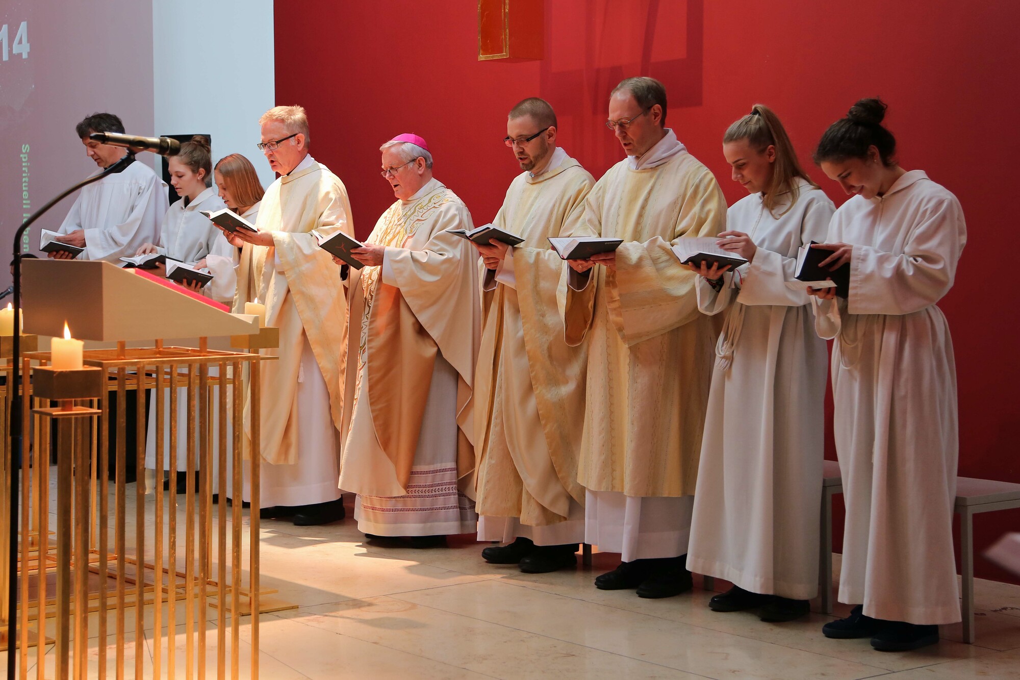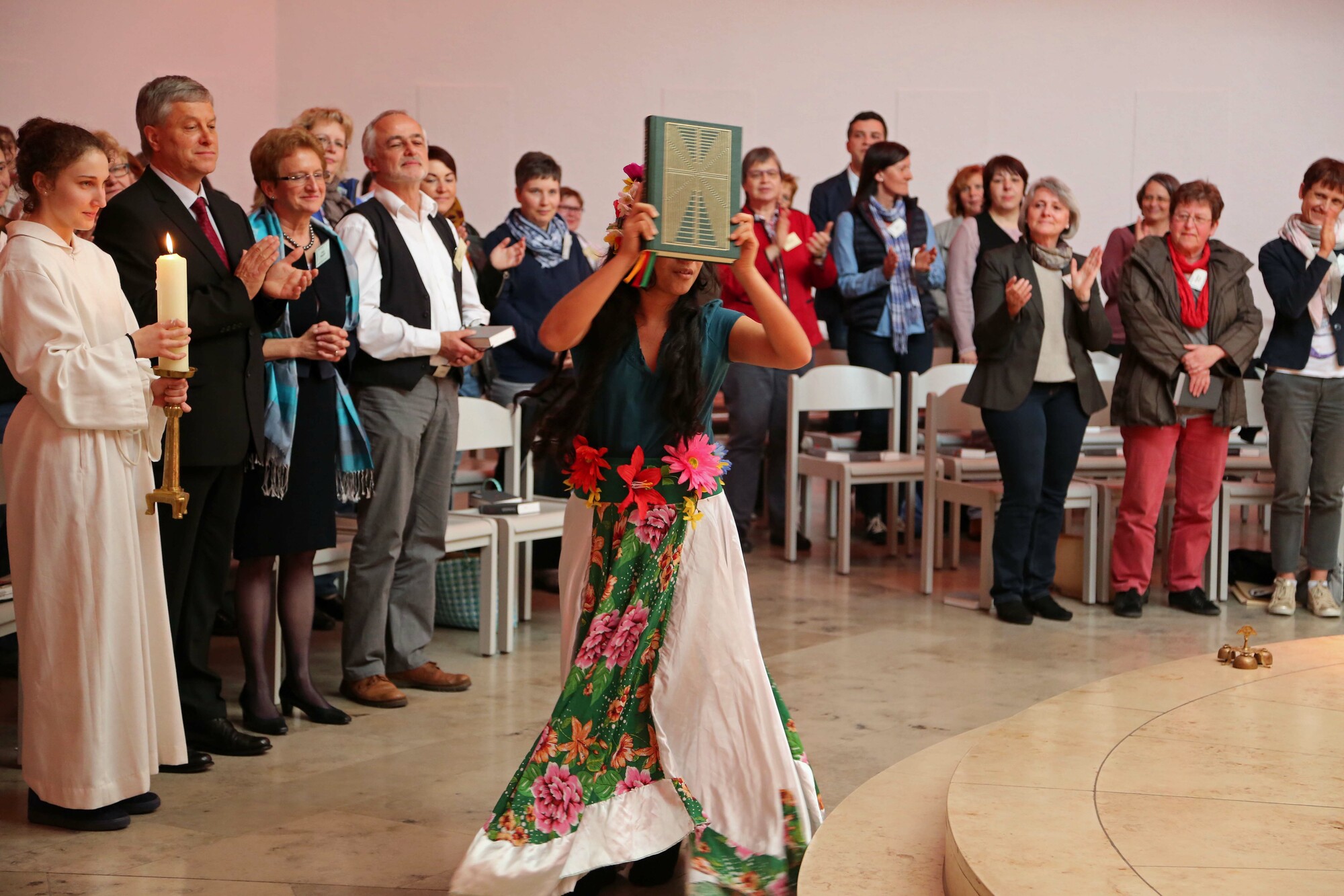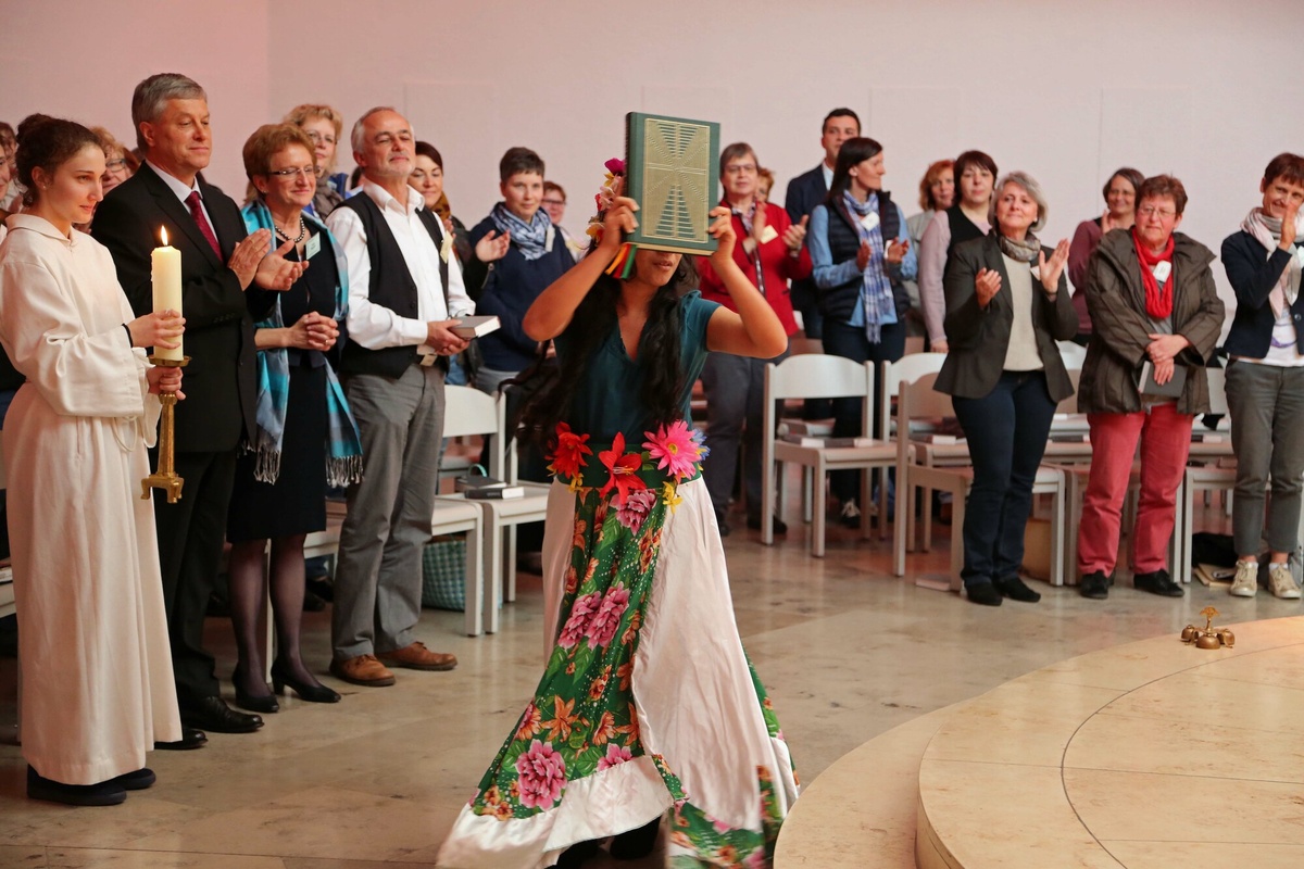 Im Anschluss an die Messfeier erwartete die Teilnehmer ein buntes Jubiläumsprogramm. Die Slammerin Marilisa Herchet trug einen selbst geschriebenen Text über das Thema „Hoffnung“ vor. Mit eindringlichen Worten beschrieb sie den Frust einer Lehrerin im Schulalltag, die Einsamkeit eines Witwers oder das Zwiegespräch zweier Patientinnen im Krankenhaus. „Die Hoffnung ist ein zarter Spross und wer sie lange Zeit nicht goss, der hofft nur noch auf Regen, anstatt es selbst zu regeln“, lautete der Refrain, in dem sie dazu aufforderte, selbst zum Gartenschlauch zu greifen und anderen zu helfen: „Das kannst Du auch!“ Ein Filmbeitrag ließ die Geschichte der Schulpastoral im Bistum Würzburg Revue passieren. Praxisbeispiele aus dem ganzen Bistum zeigten die Vielfalt der Angebote. Die Bandbreite reichte von kreativen Angeboten wie dem Gestalten von Krippenfiguren über einen ökumenischen Kreuzweg bis hin zu Aktionen wie den „Pausenengeln“, die sich für eine friedliche Schulpause einsetzen, oder der Begegnung mit jungen Flüchtlingen in einer Gemeinschaftsunterkunft in Aschaffenburg.