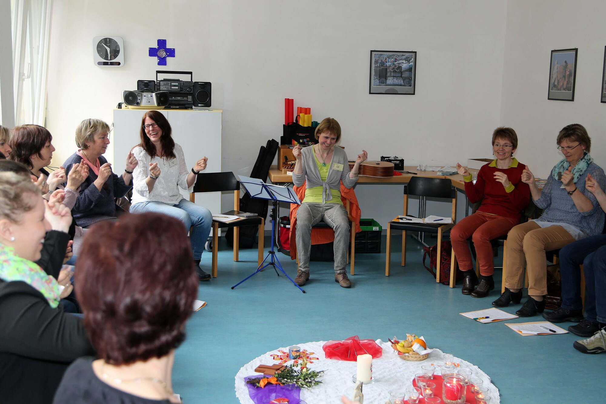 Im Rahmen des Schulpastoral-Tags wurden zudem 24 Workshops angeboten. Die Bandbreite reichte von der Gestaltung einer schulinternen Trauerfeier über Kurzfilme zum Thema Spiritualität bis hin zu Tipps für die Intervention bei fremdenfeindlichem Verhalten. So erfuhren die Teilnehmer zum Beispiel im Workshop „Was tun gegen Mobbing und Cybermobbing in der Schule?“, woran man Mobbing erkennen kann und welche Möglichkeiten es gibt, dagegen vorzugehen. Bei „Hits für Kids“ probierten sie aus, wie man Lieder mit Gesten und Bodypercussion untermalen kann. Über den eigenen Tellerrand hinausschauen konnte man beim Workshop „Das Leben feiern – Impulse aus der brasilianischen Kirche“. Lieder und eine Diaschau brachten etwas von der brasilianischen Lebensfreude nach Deutschland. Organisiert wurde die Veranstaltung von Ulrich Geißler, Helga Kiesel und Helga Neudert vom Referat Schulpastoral sowie von Juliana Baron und Daniela Hälker vom Referat Jugendarbeit und Schule der Diözese Würzburg.