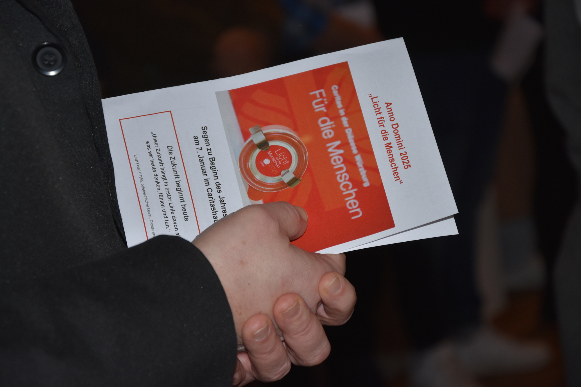 Die Caritas wolle den Menschen mit ihren unterschiedlichen Anliegen und Problemen zu einem guten Leben verhelfen, so der Vorsitzende weiter. Man tue das etwa bei den Themen Armut, Familie, Leben im Alter oder Bildung – und bringe so „Licht ins Dunkel“. Bieber unterstrich: „Als Pilger der Hoffnung können wir daran mitwirken, dass sich 2025 vieles zum Guten wendet.“ Den Mitarbeitenden überreichten die Abteilungsleiterinnen und -leiter des Verbandes passende kleine Kerzen mit der Aufschrift „Licht für die Menschen“. Im Anschluss wurde der Segen „20*C+M+B+25“ (lateinisch für: Christus Mansionem Benedicat/deutsch: Christus segne dieses Haus) an den Türen im Caritashaus angebracht.