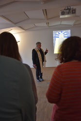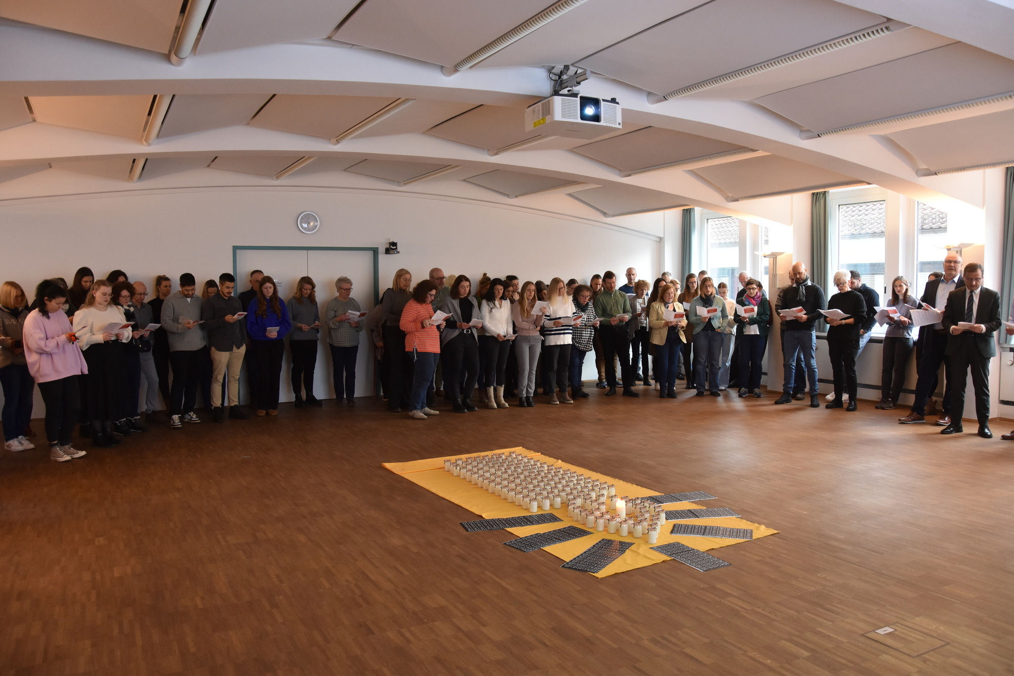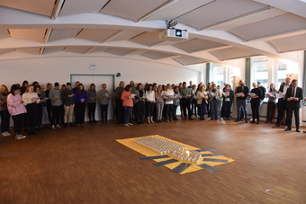 Rund 100 Mitarbeiterinnen und Mitarbeiter waren am Morgen in den großen Sitzungssaal gekommen, um mit einer kurzen Andacht in das Jahr 2025 zu starten. Zwar herrschten aktuell in der Gesellschaft viele Ängste und Befürchtungen, so Bieber, doch gelte es zuversichtlich zu bleiben, denn: „Wir wissen, egal was kommt, Gott geht mit uns.“