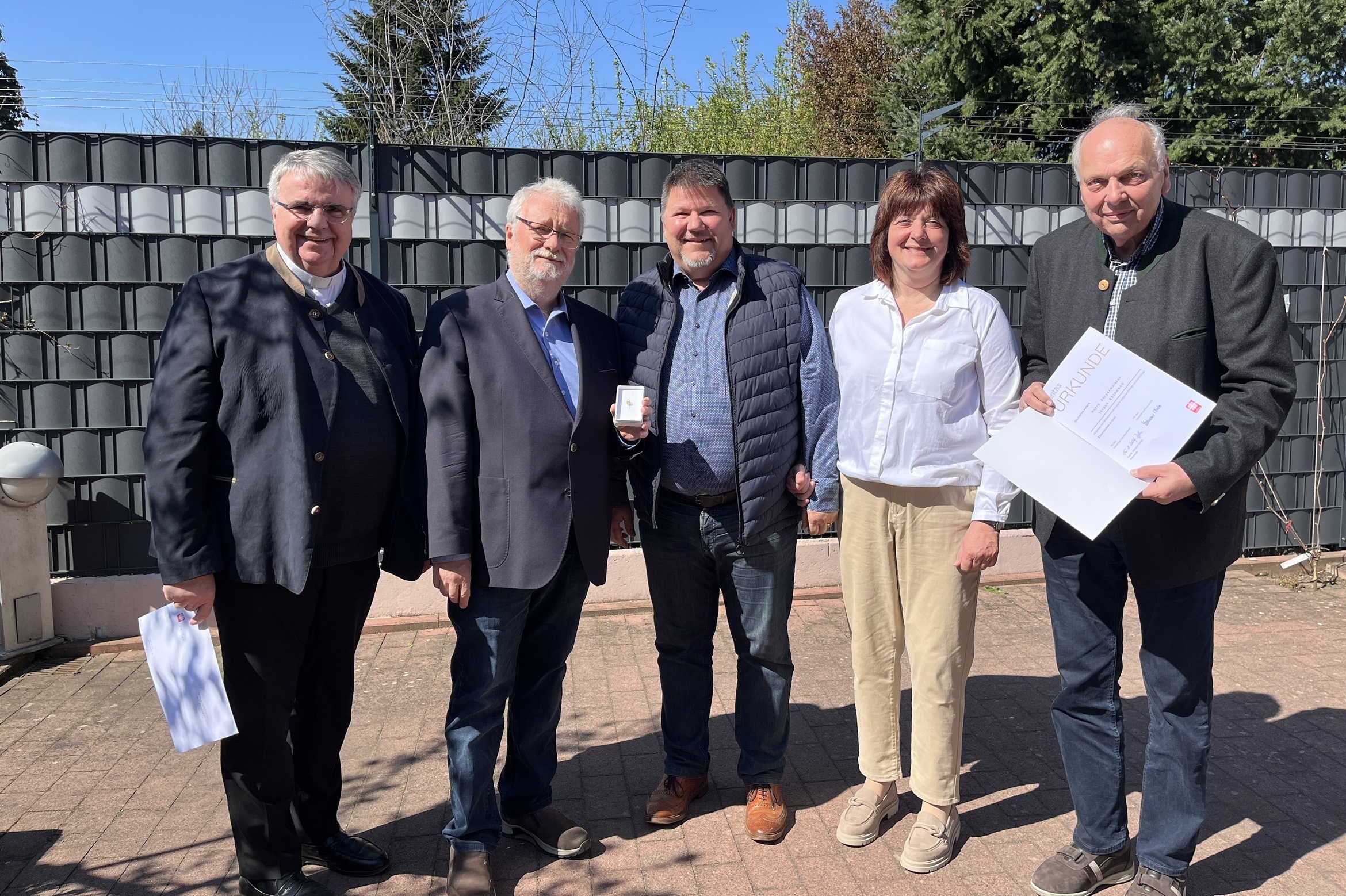 Der Vorsitzende des Caritasverbandes im Landkreis Miltenberg (KCV Miltenberg), Heinrich Almritter, und der Vorsitzende des Caritasrates im KCV Miltenberg, Hans Dieter Arnold, haben gemeinsam mit dem Vorsitzenden des Caritasverbandes für die Diözese Würzburg e. V. (DiCV), Domkapitular Clemens Bieber, dem langjährigen Bürgermeister von Niedernberg Jürgen Reinhard für die konstruktive und wirkungsvolle Zusammenarbeit zwischen Gemeinde Niedernberg und Caritas gedankt.