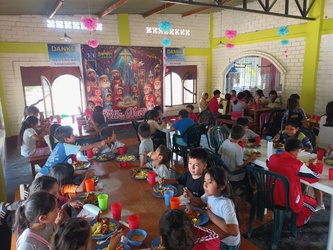 Ca. 40 Kinder habe ich Montags, Mittwochs und Freitags um 13.20 Uhr beim Treffpunkt vor dem Sportplatz in Esperanza Alta (Esperanza ist die Hoffnung) abgeholt. Im Gelände von LENTCH gabs dann etwas Zeit fürs Spielen - Sportplatz (der dringend renoviert werden müßte; so kommentierte das auch ein junger Teilnehmer bei der Videokonferenz mit den Sternsingern von Ratingen!), Kinderspielplatz, Hüpfburg – dann erhielten sie das frisch zubereitete und köstliche Mittagessen. Anschließend in vier Gruppen aufgeteilt der Förderunterricht, Hausaufgabenbetreuung, Vertiefung von Themen – Mathematik für die Älteren. Danach haben wir sie wieder zum Treffpunkt gefahren. Von dort gingen sie zu Fuß nach Hause – einige mußten noch den öffentlichen Bus nehmen, damit sie in ihre sehr abgelegene Viertel kommen konnten.