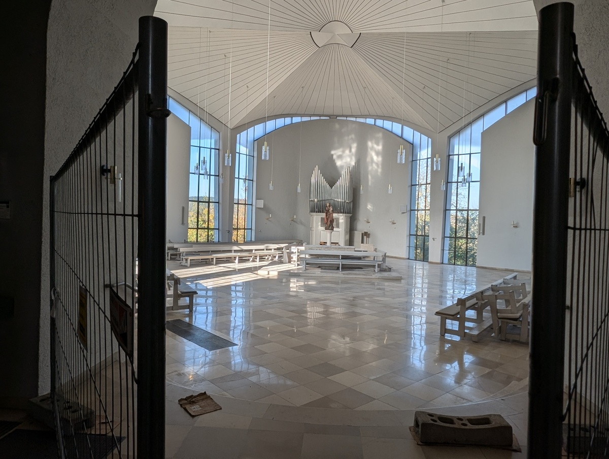 Alles begann 2019, als ein heftiger Sturm über die Region fegte und erhebliche Schäden an der Wallfahrtskirche verursachte. Bei diesem Unwetter platzten unter anderem Fenster, Wasser drang in die Kirche ein, das Dach wurde beschädigt, und auch die Elektronik wurde in Mitleidenschaft gezogen, sodass die Glocken mehr als ein Jahr lang schwiegen. Schnell begann man, die Schäden zu beheben. Bei einem feierlichen Gottesdienst im Oktober 2021 hat der Generalvikar der Diözese Würzburg, Dr. Jürgen Vorndran, die Kirche wiedereröffnet. Doch nur wenige Wochen später, im Dezember, musste die neue Wallfahrtskirche wegen Einsturzgefahr erneut gesperrt werden.