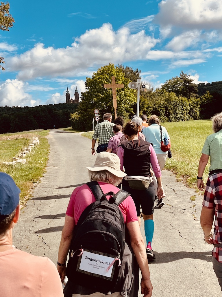 Am nächsten Tag ist die Strecke nur noch halb so lang und mittags treffen die Wallenden in Vierzehnheiligen ein und werden dort schon erwartet: Von Pater Maximilian aber auch den Buswallfahrern aus Estenfeld, die mit 30 Personen angereist waren.