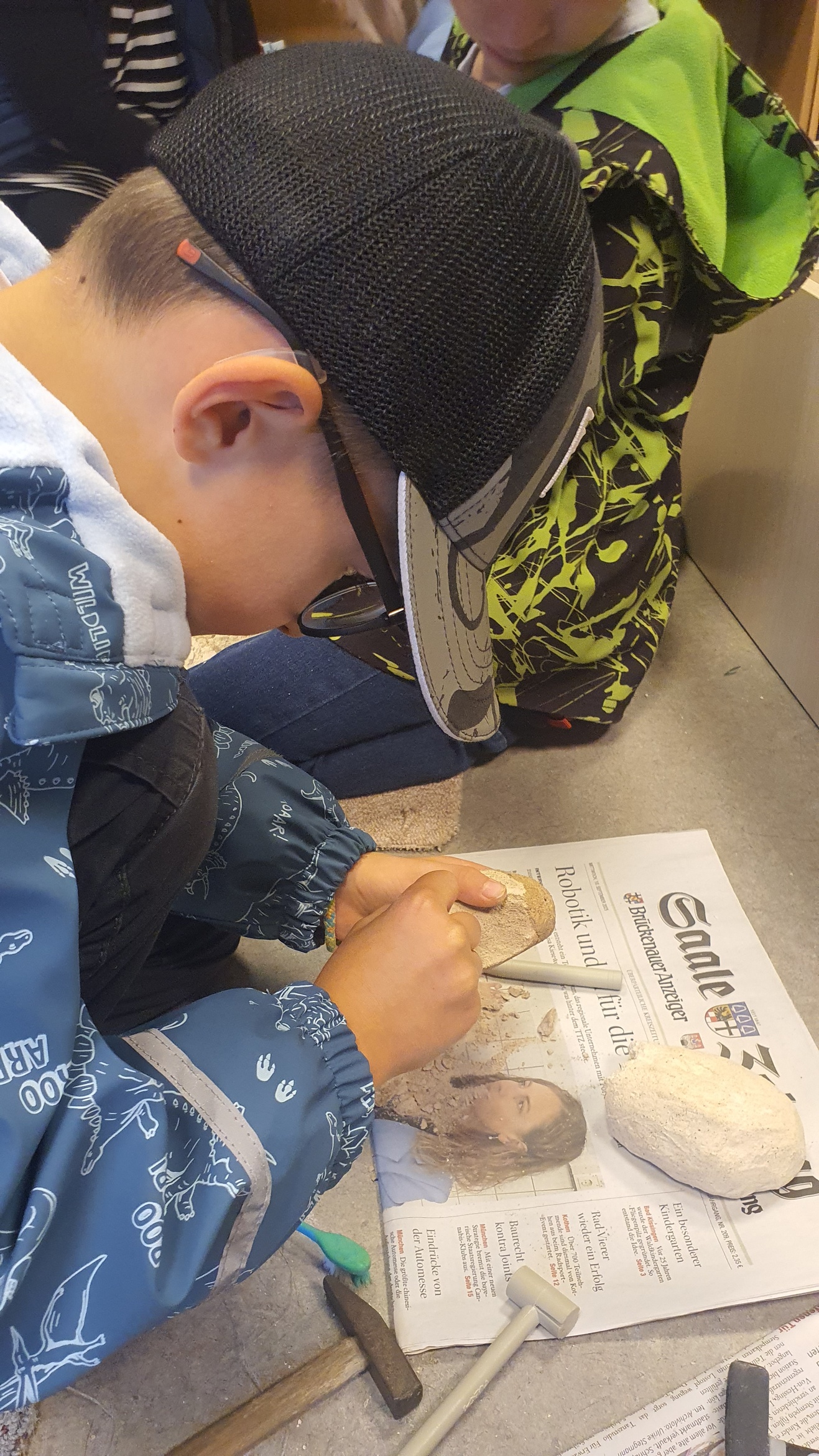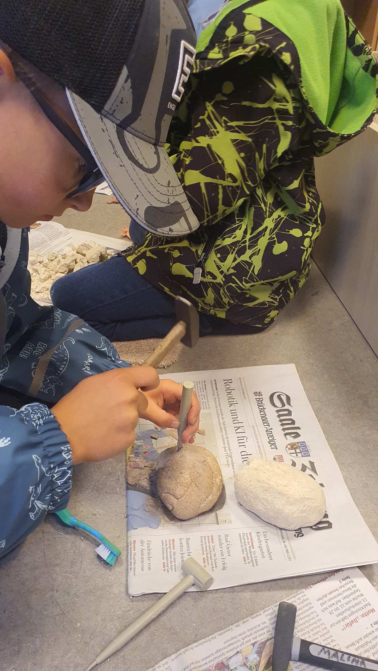 Anschließend wurden die Dino-Eier gesucht und vorsichtig geöffnet. Voller Begeisterung wurden die Dino-Babys pfleglich vom Staub befreit.