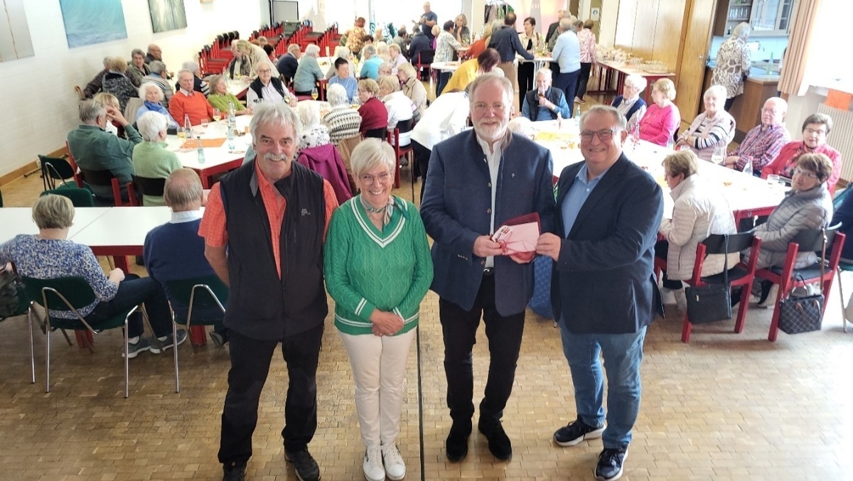 Auch das gemütliche Beisammensein im Anschluss im liebevoll geschmückten Pfarrei-Zentrum fand großen Zuspruch. Diesen Rahmen nutzten Hösbachs erster Bürgermeister Frank Houben und der Organisator der Hösbacher Kulturtage Roland Leitz, um eine Spende für die Sanierung des Kirchturms, den die Hösbacher ihren „Michel“ nennen, zu überreichen.