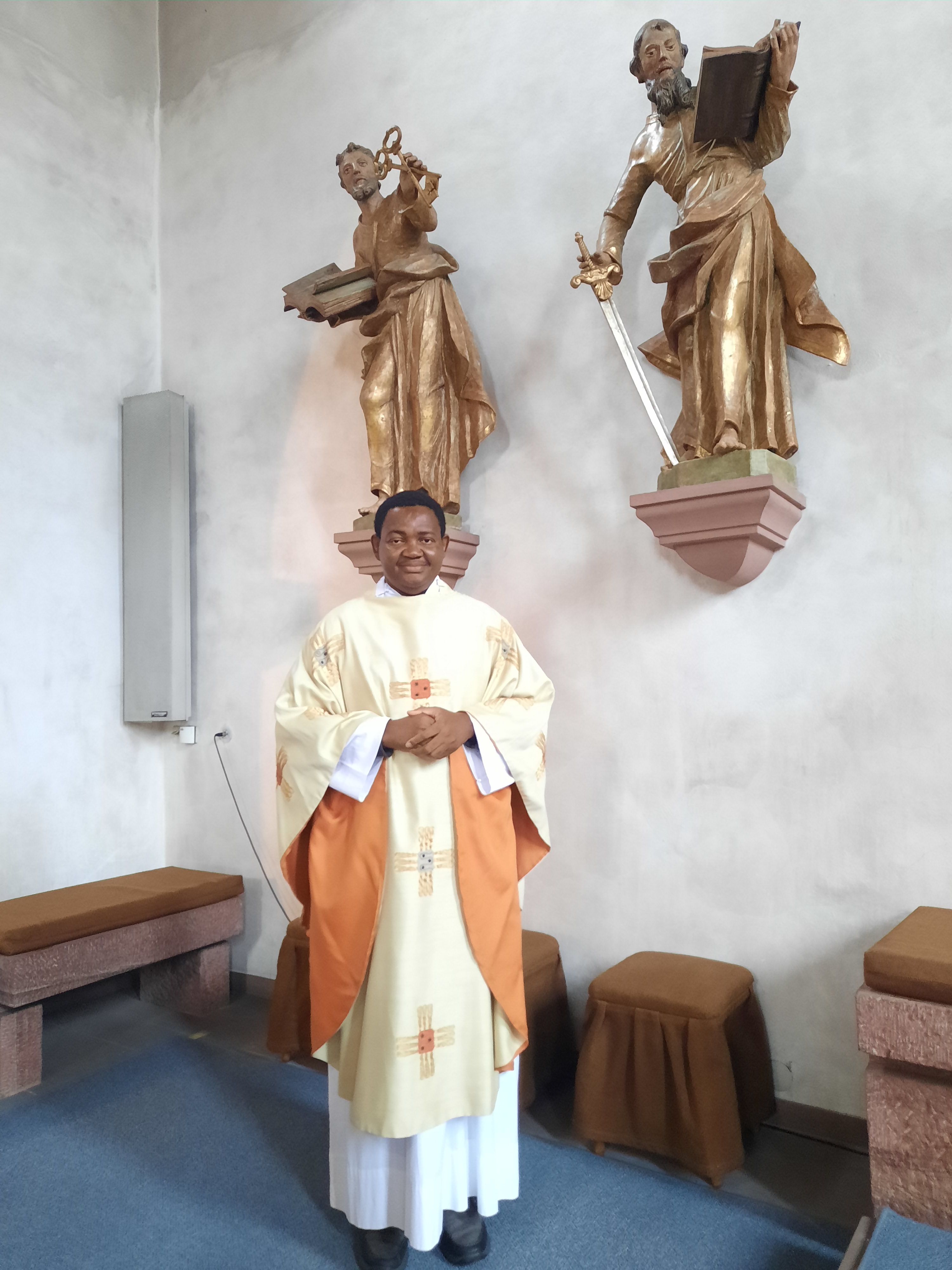 Gemünden. Im Rahmen eines feierlichen Gottesdienstes in der St. Peter und Pauls-Kirche Gemünden wurde kürzlich der neue Pfarrvikar Benjamin Odo vorgestellt. Der sehr gut besuchte Gottesdienst wurde mitgestaltet von der Gössenheimer Schola unter der Leitung von Manfred Marold sowie von der Gemündener Kantorin Chikako Kirchner-Inoue