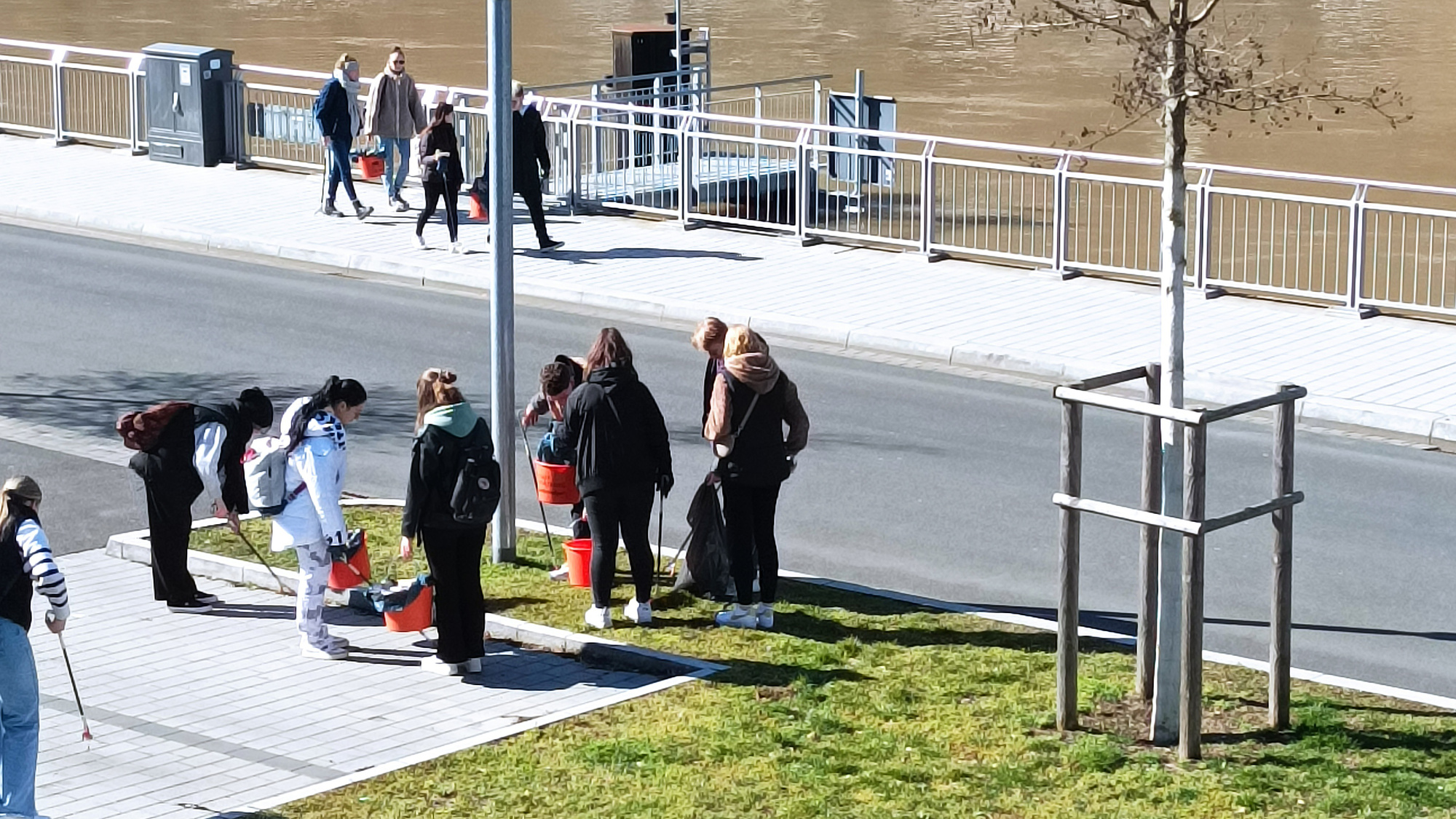 So machten sich am Freitag, 17. März 2023, 42 Studierende gemeinsam mit zwei Lehrkräften auf, um in der Stadt zurückgelassenen Unrat einzusammeln. Ausgestattet mit Müllgreifern, Eimern, Handschuhen und Abfallbeuteln befreiten sie die nähere Umgebung der FakS und Teile des Mainufers in Richtung Randersacker von zurückgelassenem Dreck. Neben allerlei Glas, Verpackungs- und Einwegmüll, Folien, Papiertüten oder Kartons seien vor allem unzählige Zigarettenkippen in die Müllbeutel gewandert, erklärt Margit Obtresal, Lehrerin an der FakS St. Hildegard und neben Lehrer Thomas Schraudt eine der Initiatorin der Müllsammelaktion. Dass Raucher achtlos ihre Zigarettenreste auf der Straße oder in Grünanlagen entsorgen, machte die Studierenden fassungslos. Viele hätten bis jetzt gar nicht auf die vielen Kippen am Wegesrand geachtet, doch durch die Sammlung merkten sie, welche enorme Anzahl an Zigarettenstummeln eigentlich auf die Straße geschmissen werden. „Das ist völlig unverständlich! Erst recht, wenn man weiß, dass gebrauchte Zigarettenfilter – bedingt durch ihren hohen Giftgehalt – als Sondermüll gelten“, gab eine Studierende zu Bedenken. Weitere „spektakuläre Entdeckungen“ wie ein zurückgelassener Gartenstuhl oder ein alter Flachbildschirm sorgten außerdem für reichlich Diskussionsstoff unter den engagierten Müllsammlerinnen und Müllsammlerin.