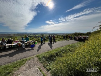 Mit dem beeindruckenden Blick auf das Umland bei herbstlichem Sonnenschein ging Pastoralreferent Stephan Tengler auf den Namenspatron der Pfarreiengemeinschaft, den heiligen Franziskus (1181-1226), ein. Anhand der Legende mit dem Wolf von Gubbio wurde klar, wie sich Franziskus für Frieden und Versöhnung einsetze und was wir von ihm heute - knapp 800 Jahre später - noch von ihm lernen können. Nach der Andacht, die musikalisch von vier BläserInnen begelitet wurde, gab es noch die Möglichkeit, bei Kaffee und Kuchen ins Gespräch zu kommen.