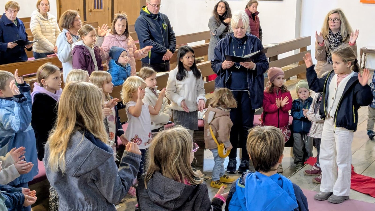 Zahlreiche Kinder erlebten einen fröhlichen, aber auch nachdenklichen Kindergottesdienst, den Melanie Wahl und Franziska Wießler vorbereitet hatten.