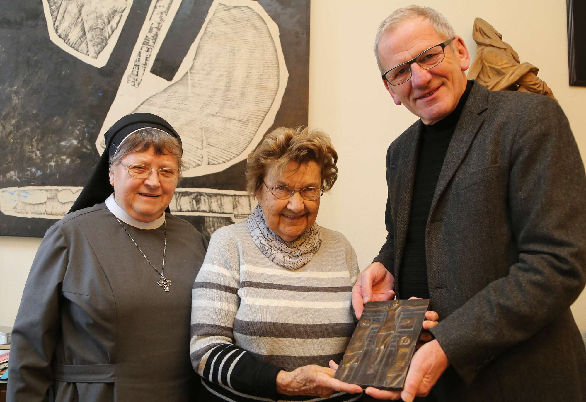 Ein von ihrem Bruder Günter Grass geschaffenes Bronzerelief hat am Montag, 14. März, Waltraut Grass dem Würzburger Museum am Dom gestiftet. Sie überreichte die 1947 für die Bewerbung an der Düsseldorfer Kunstakademie gefertigte Darstellung des Gekreuzigten im Bischöflichen Ordinariat Würzburg. Mit den zwei Räubern links beziehungsweise rechts von Jesus unterscheide diese sich von der häufigeren Darstellung mit Maria und Johannes unter dem Kreuz, erläuterte die Stifterin.