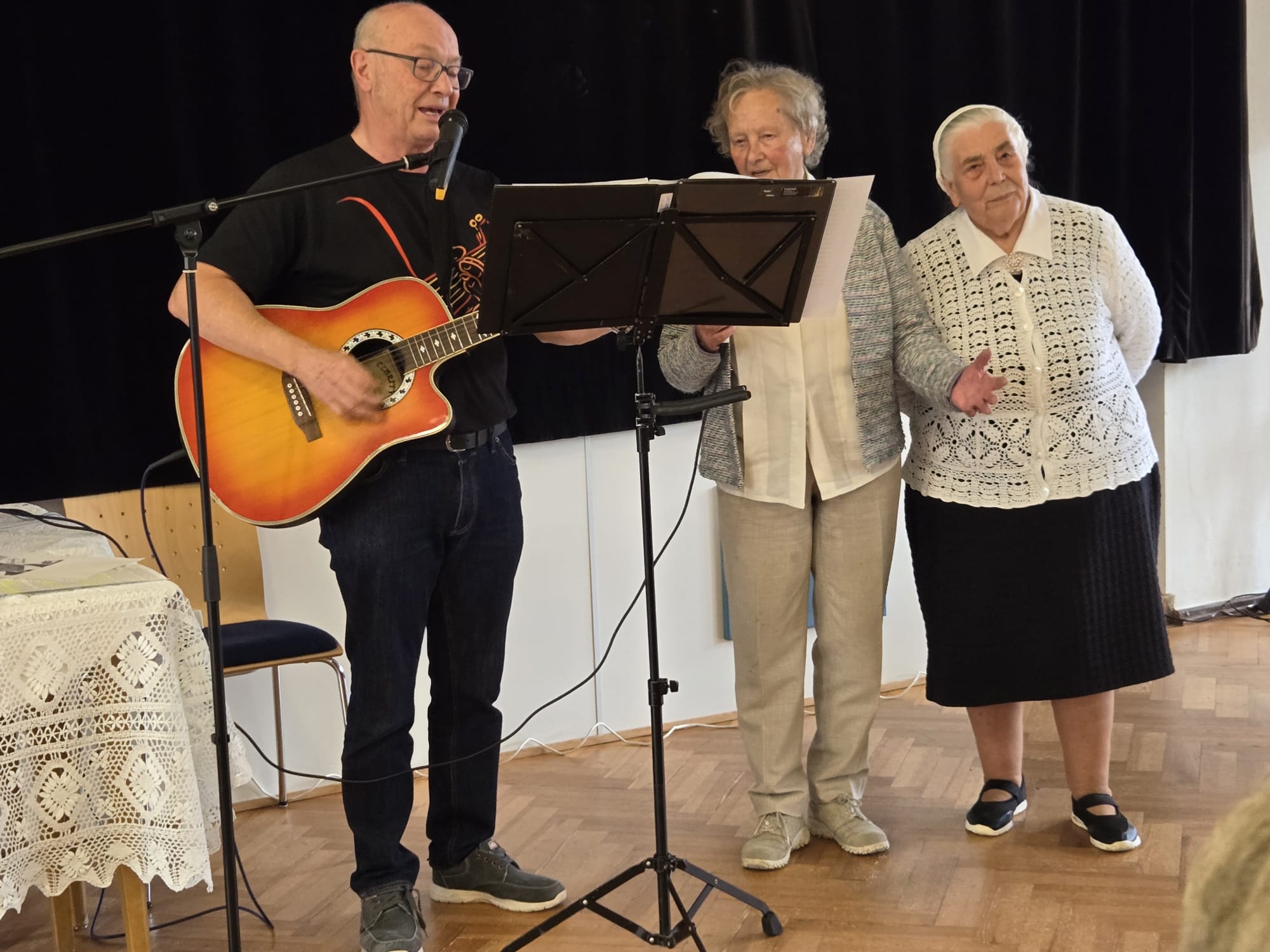 Rudi Friedl spielte auf seiner Gitarre alte Schlager. Kräftiges Klatschen war Dank und neuer Anreiz zu weiteren Darbietungen.