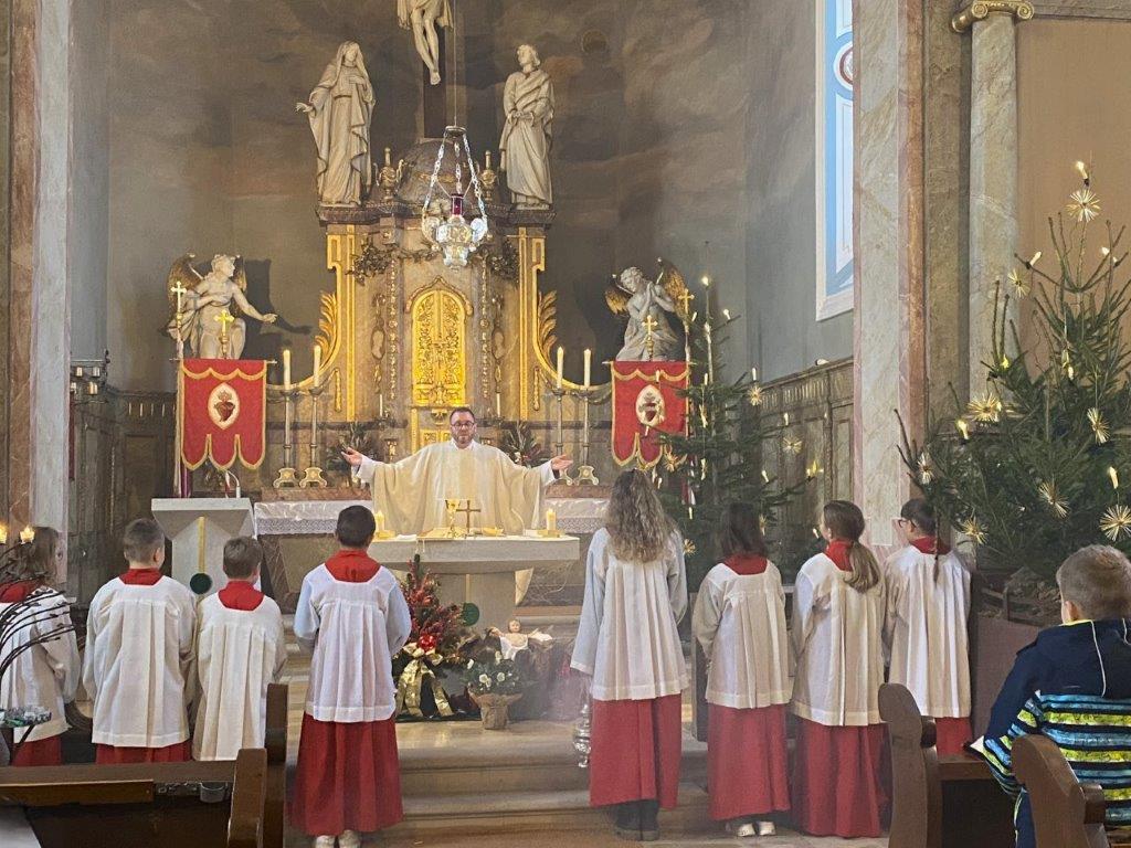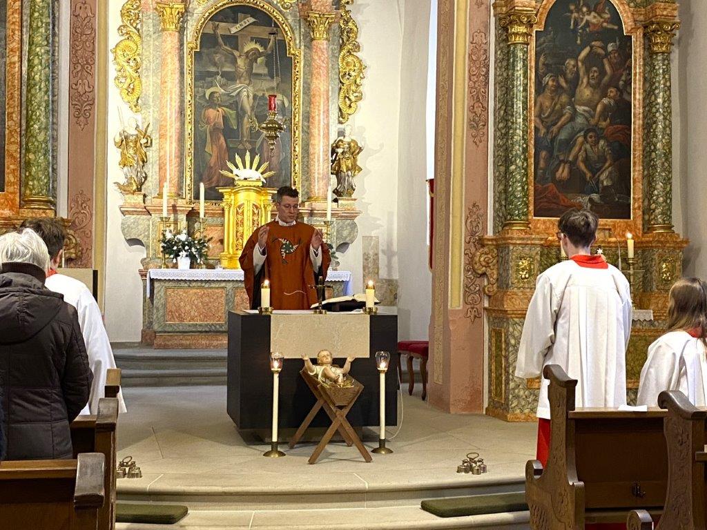 Auch der Weihnachtstag brachte festliche Gottesdienste in unseren besonders schön geschmückten Kirchen. Hochämter wurden in Altenmünster, Birnfeld, Sulzdorf und Stadtlauringen zelebriert. Dort erklang die Frohe Botschaft, dass Gott selbst sich uns in seinem Sohn Jesus gezeigt hat - auf menschliche Weise, damit wir es verstehen und ihm glauben. Diese Hoffnungsbotschaft dürfen wir besonders im eben begonnenen Heiligen Jahr miteinander und mit anderen teilen.