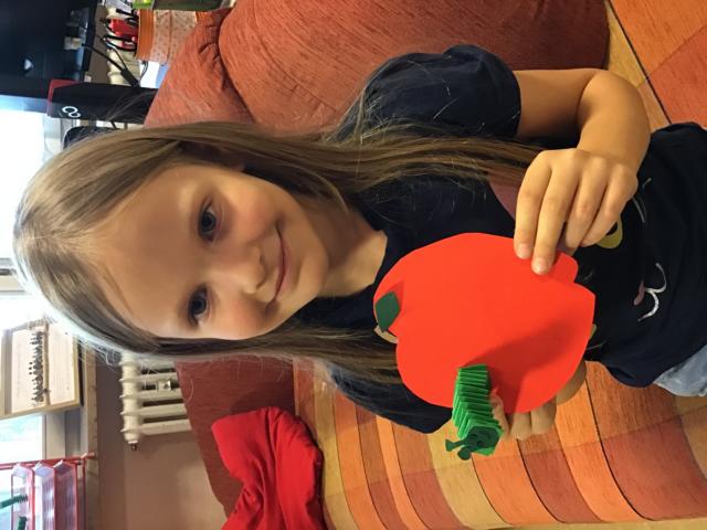 Als Bastelaktion konnten die Kinder aus Tonpapier einen Apfel mit Wurm basteln. Der Wurm wurde als Hexentreppe gefaltet.