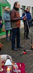 Dieser Auftrag an alle wurde noch in Meditation und Gebeten von Gabi Treutlein und Diakon Joachim Werb vertieft. Auch der Friedensgruß in Anbetracht von Krieg auf der ganzen Welt, durfte nicht fehlen. Die schlichte, aber stimungsvolle Musik (Gitarre und brilliante Trompete) unterstrich die gelungene Atmosphäre und Feier auf diesem Platz.