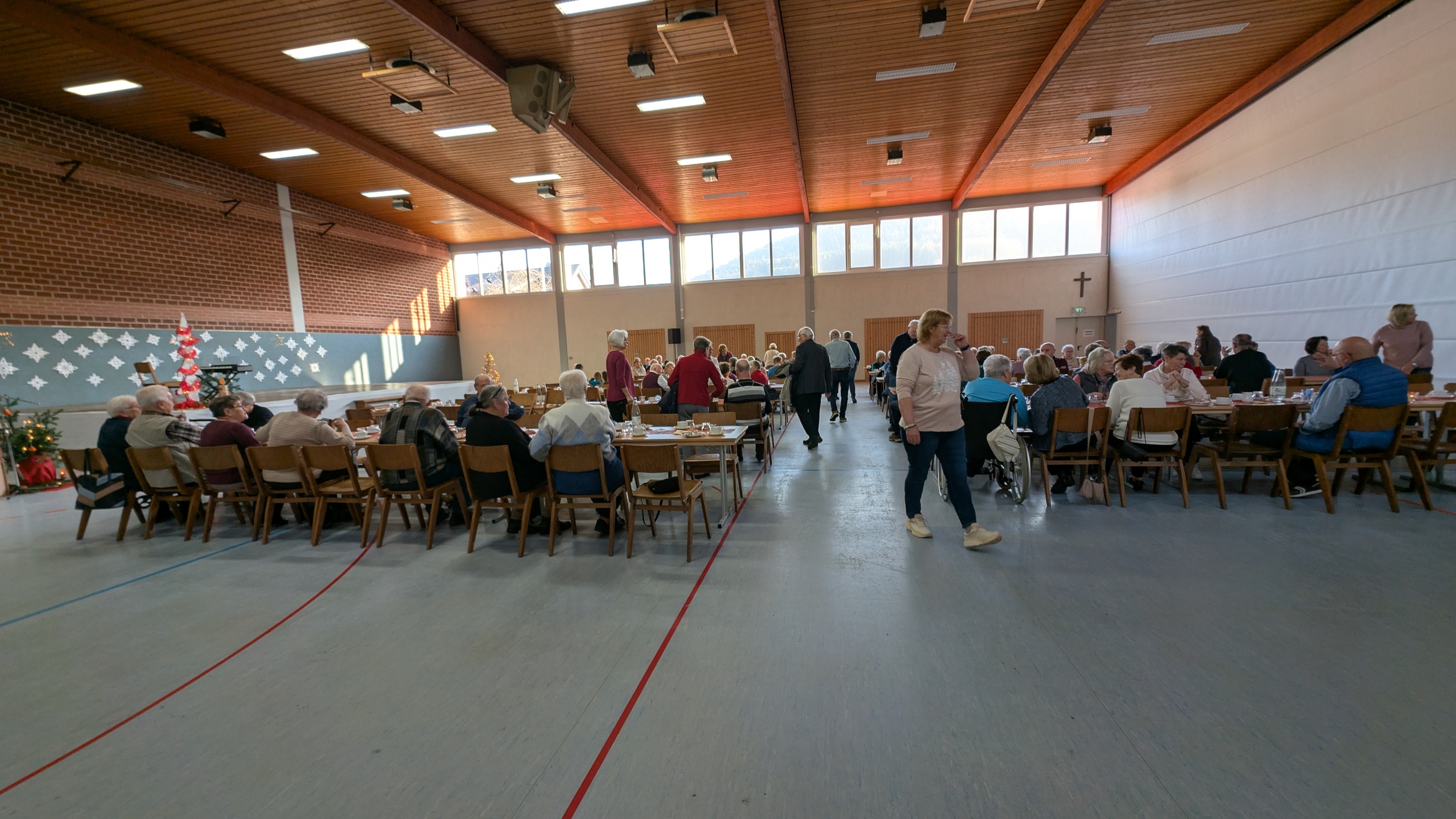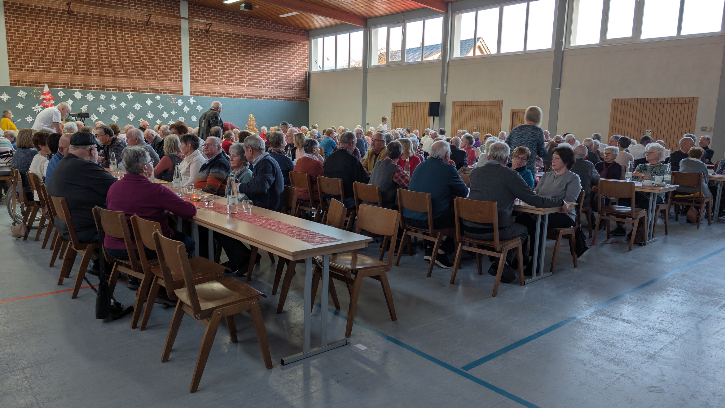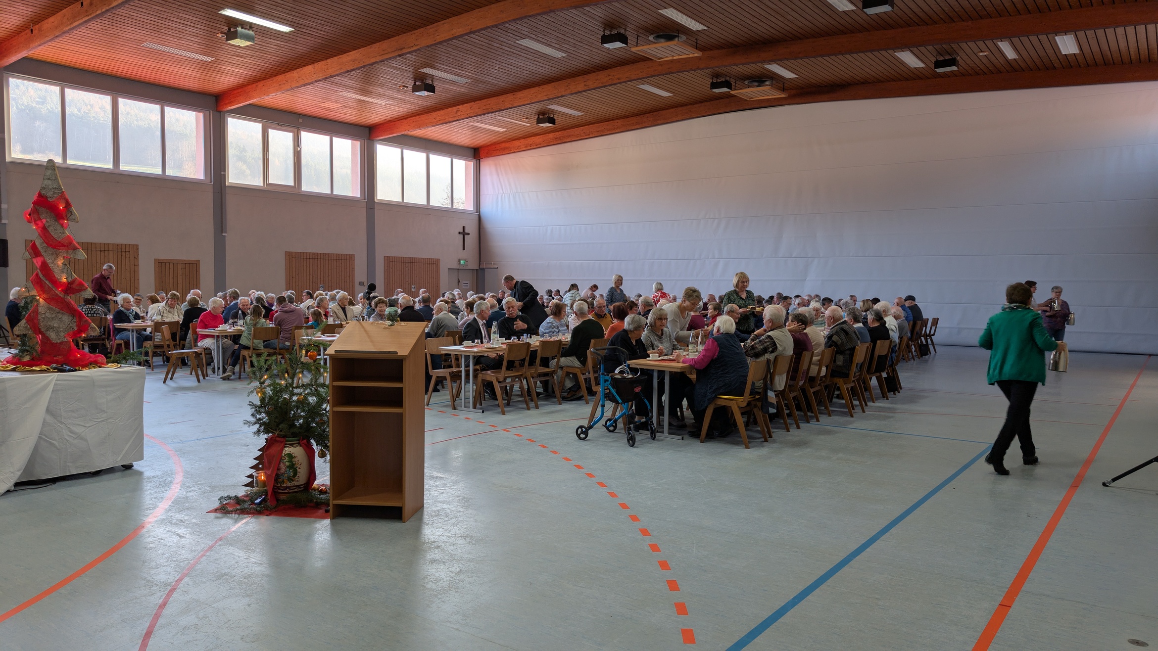 Knapp 200 Seniorinnen und Senioren folgten der Einladung der Markt- und Kirchengemeinde Kirchzell zum traditionellen Seniorennachmittag in der Turnhalle Kirchzell. Bürgermeister Stefan Schwab wie auch Pfarrer Michael Prokschi begrüßten die zahlreichen Gäste und wünschten einen besinnlichen wie auch unterhaltsamen Nachmittag. Nach besinnlichen Worten durch Bärbel Grimm (PGR) lud diese auch ein zu Kaffee und Kuchen. Der Männergesangverein Frohsinn unter der Leitung von Hermann Trunk brachte sich ein mit adventlichen Liedern und unterstützte auch den Gesang der gemeinsamen Lieder. Die Schülerinnen und Schüler der 3. Klasse zeigten das weihnachtliche Stück „Der Stern von Betlehem“. Eifrig hatten die Kinder im Vorfeld geprobt und erfreuten nun die Seniorinnen und Senioren. Pfr. Prokschi dankte den Kindern mit einem Präsent und einer Spende für die Klassenkasse. Bei kühlen Getränken und einem Imbiss gab es viele anregende Gespräche. Ein kurzweiliger Nachmittag, der vielen älteren Menschen Freude brachte.