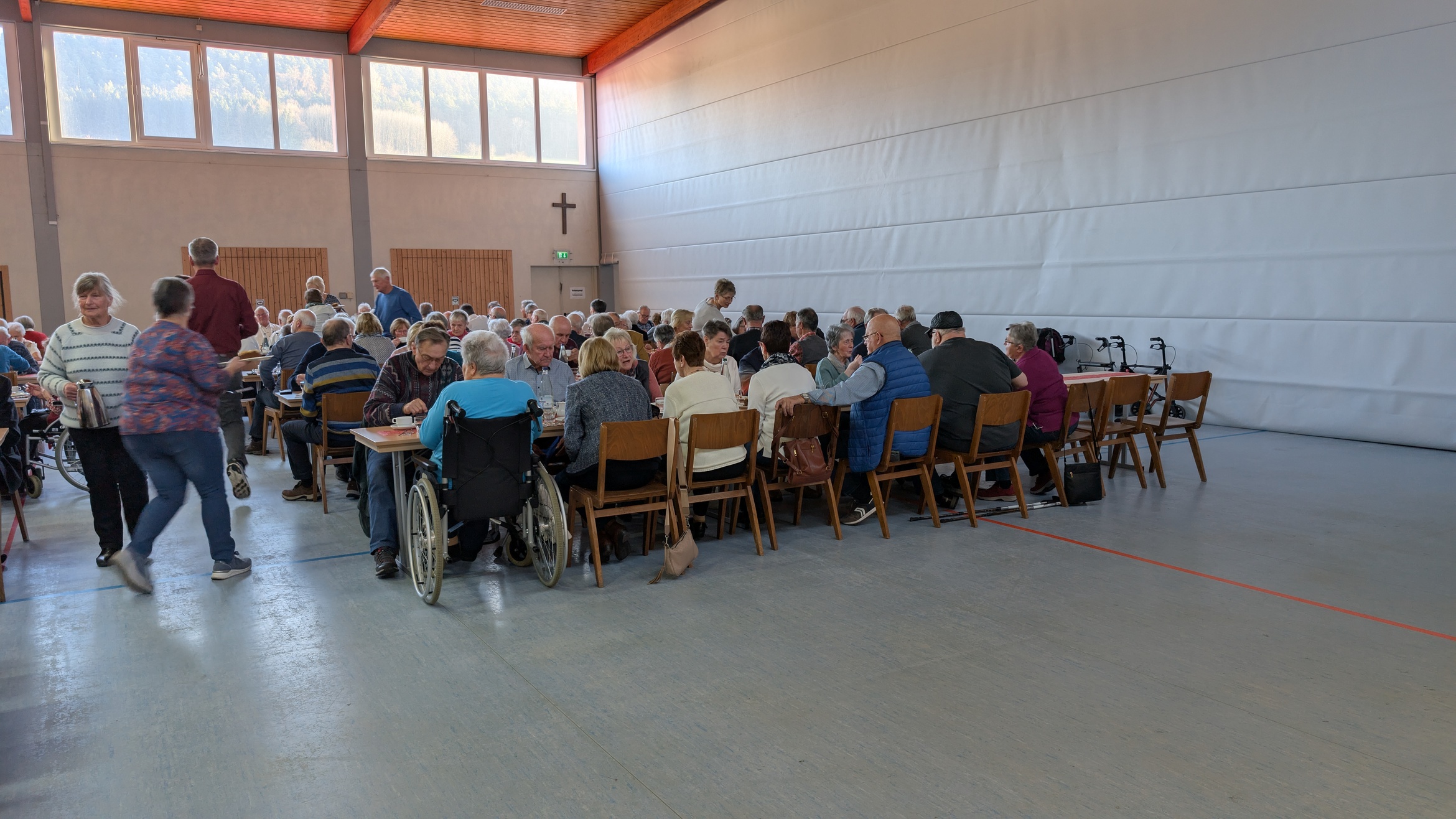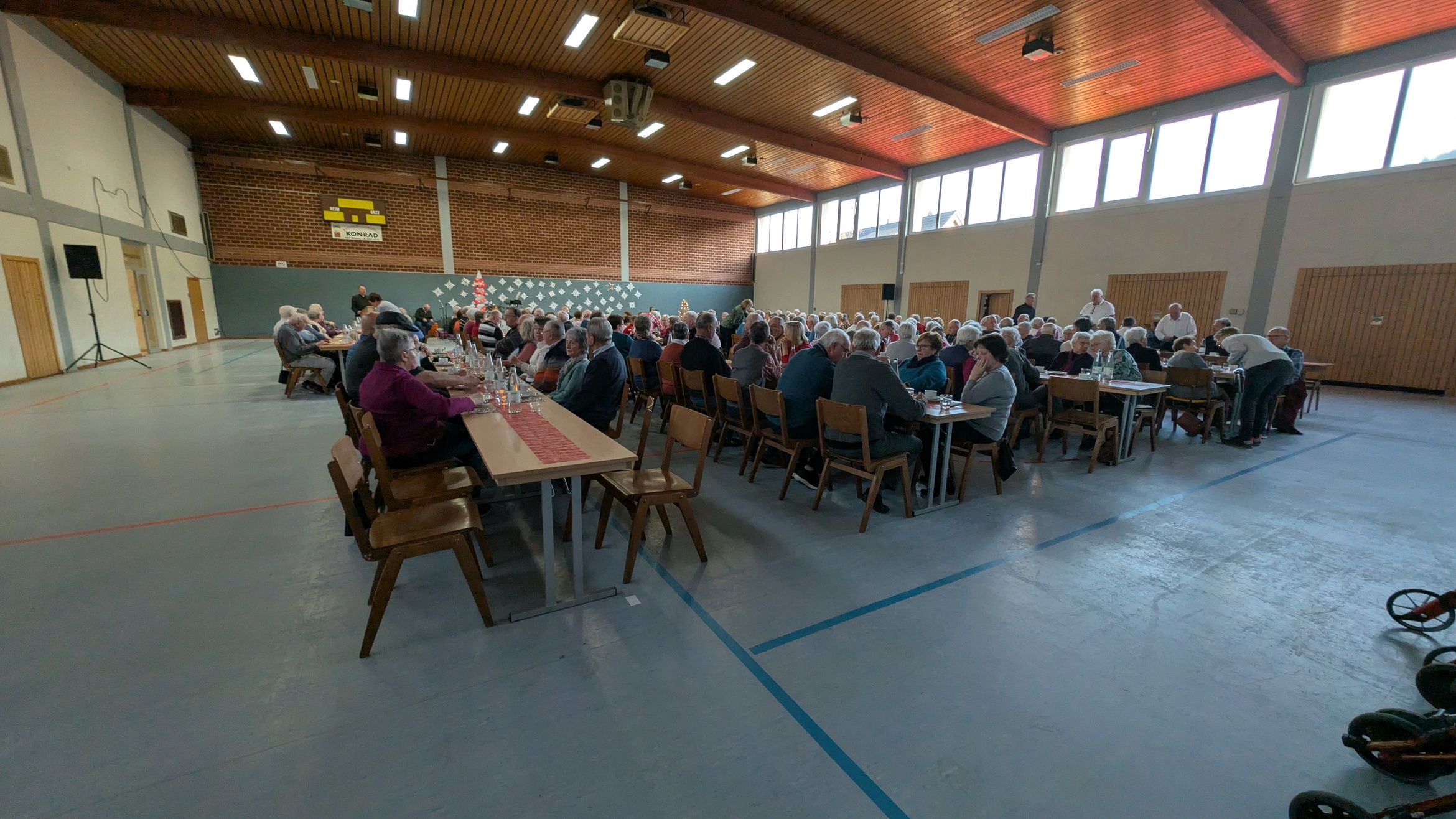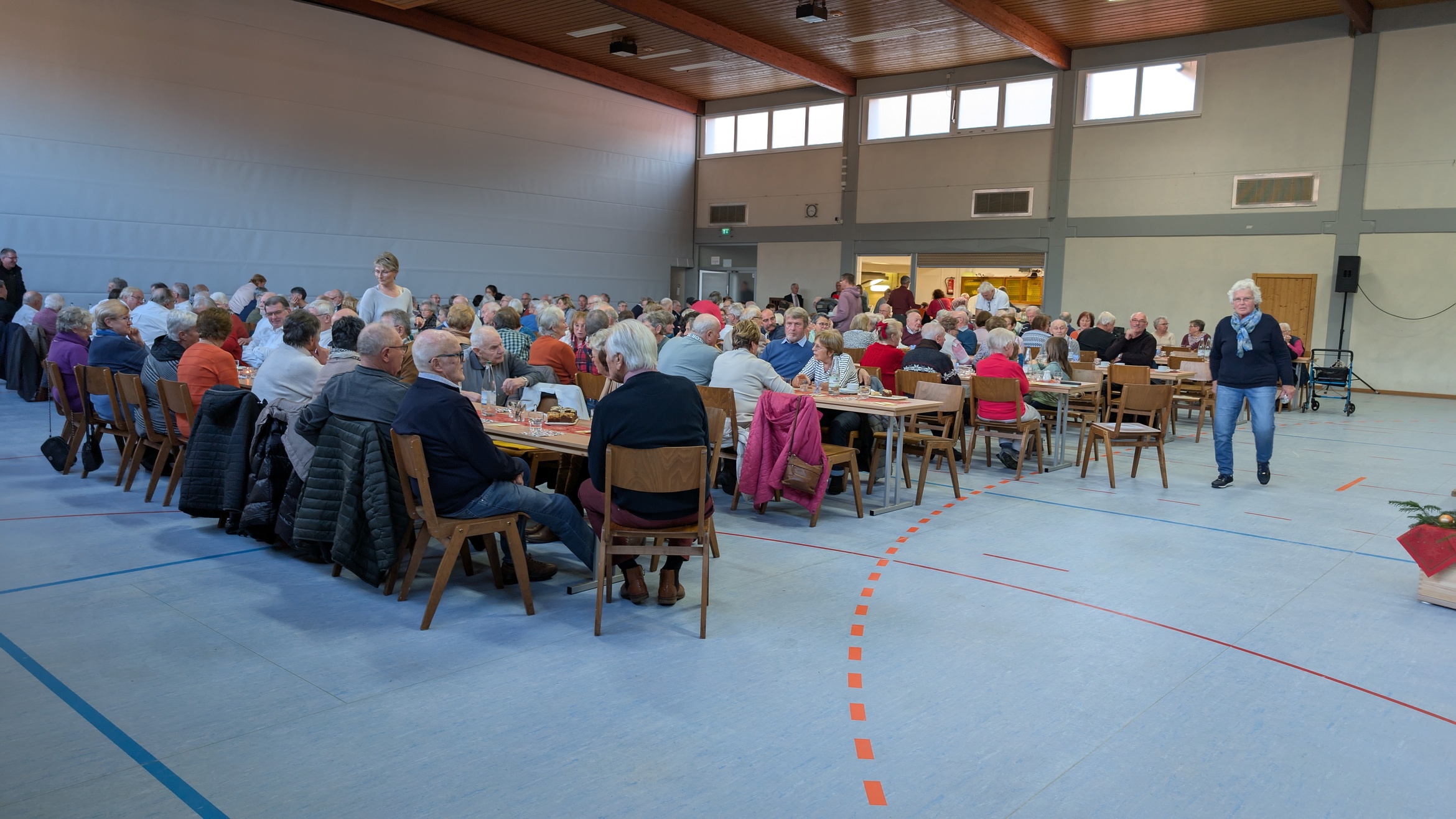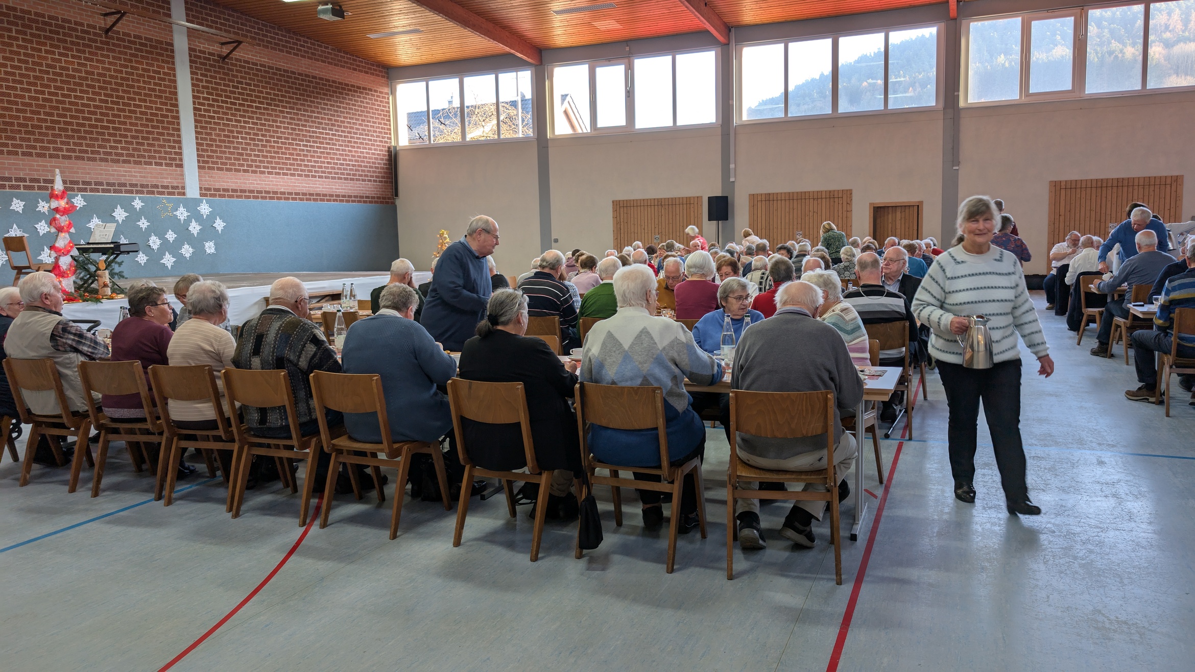 Knapp 200 Seniorinnen und Senioren folgten der Einladung der Markt- und Kirchengemeinde Kirchzell zum traditionellen Seniorennachmittag in der Turnhalle Kirchzell. Bürgermeister Stefan Schwab wie auch Pfarrer Michael Prokschi begrüßten die zahlreichen Gäste und wünschten einen besinnlichen wie auch unterhaltsamen Nachmittag. Nach besinnlichen Worten durch Bärbel Grimm (PGR) lud diese auch ein zu Kaffee und Kuchen. Der Männergesangverein Frohsinn unter der Leitung von Hermann Trunk brachte sich ein mit adventlichen Liedern und unterstützte auch den Gesang der gemeinsamen Lieder. Die Schülerinnen und Schüler der 3. Klasse zeigten das weihnachtliche Stück „Der Stern von Betlehem“. Eifrig hatten die Kinder im Vorfeld geprobt und erfreuten nun die Seniorinnen und Senioren. Pfr. Prokschi dankte den Kindern mit einem Präsent und einer Spende für die Klassenkasse. Bei kühlen Getränken und einem Imbiss gab es viele anregende Gespräche. Ein kurzweiliger Nachmittag, der vielen älteren Menschen Freude brachte.