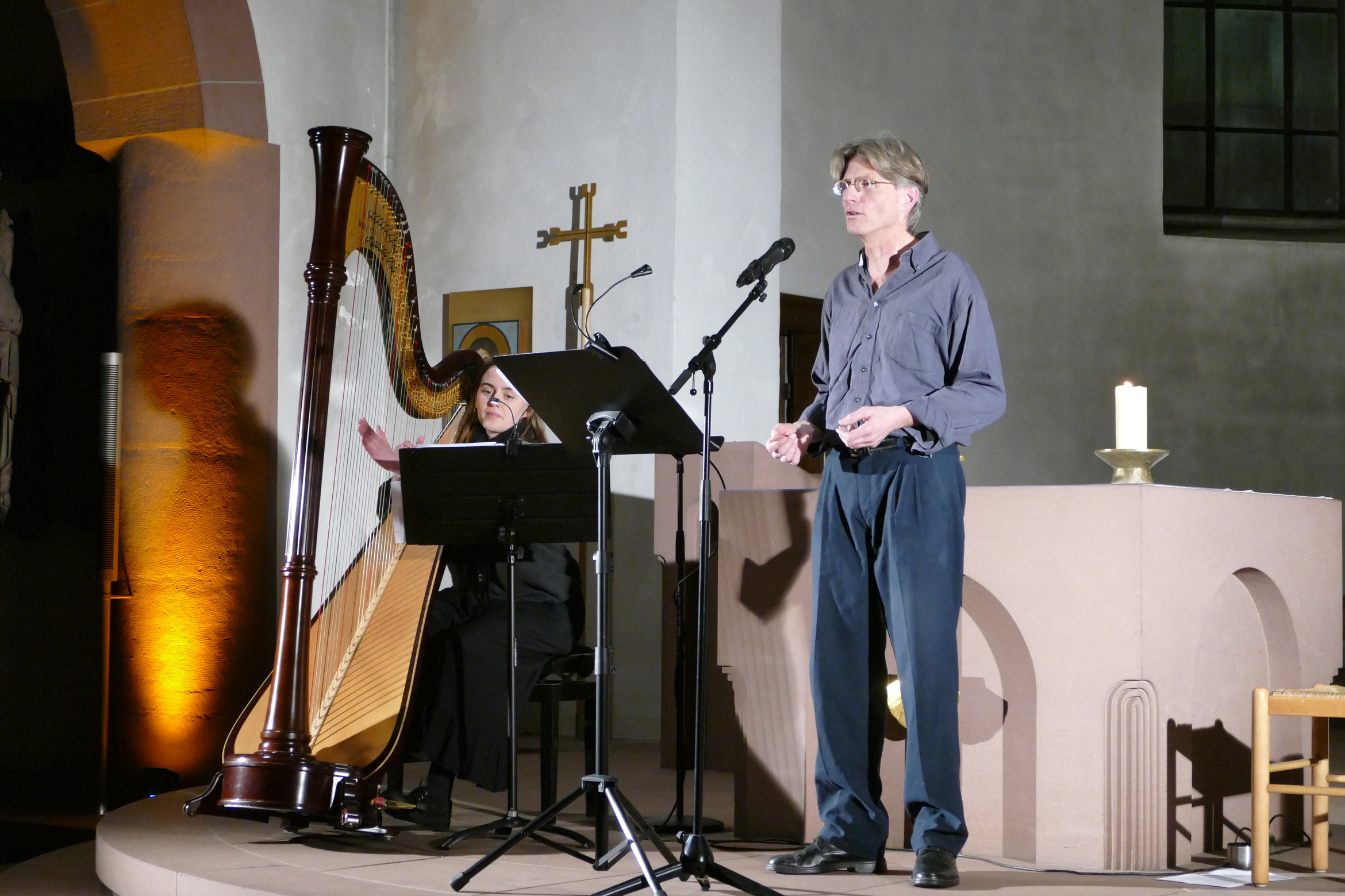 Nun war Hüsch ja ein bundesweit bekannter Kabarettist, doch an diesem Abend standen Psalmen und Gebete im Mittelpunkt. So etwas verbindet man ja nicht gleich mit einem Kabarettisten, aber durchaus mit der Adventszeit. Burkard Vogt hat das neugierig gemacht. Er hat sich mit den Künstlern über diese andere Seite des 2005 verstorbenen Kabarettisten unterhalten.