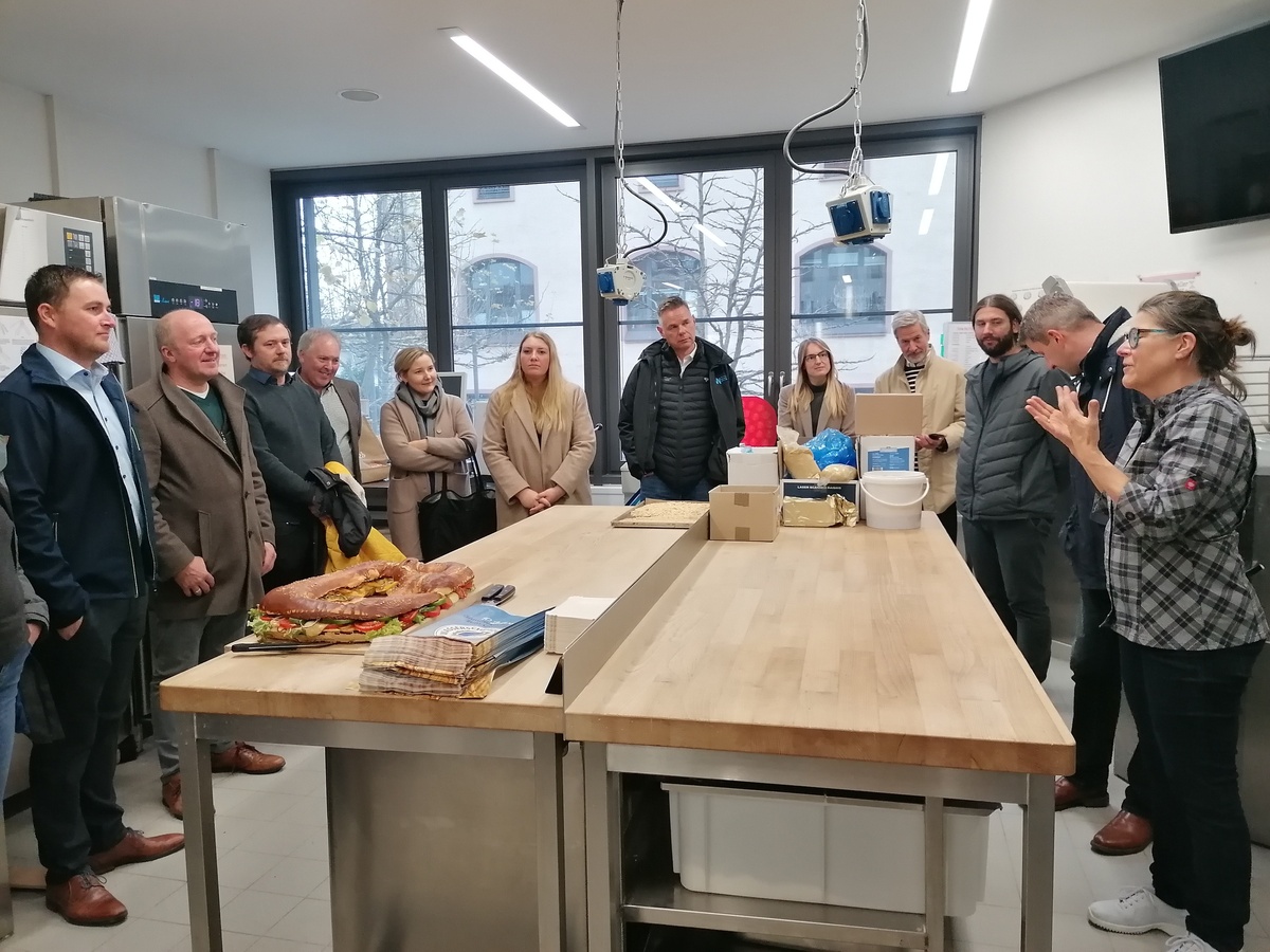 Besonders erfreulich: Als eine der zwei Berufsschulen, die zur Ausbildung der künftigen Bäckerinnen, Bäcker und Fachverkäuferinnen bereits Wasserschutz-Weizenmehl verwenden, gewährte die Don Bosco Berufsschule einen Einblick in ihr Konzept. Schulleiter Ebert erklärte, dass sich Jugendliche und junge Erwachsene heute ganz bewusst für den Umweltschutz einbringen möchten. Das Backen mit Wasserschutz-Weizenmehl sei da der perfekte Baustein für die ausgezeichnete „Umweltschule in Europa“. Nach einem von Projektkoordinatorin Katharina Schwab vom Forschungsinstitut für biologischen Landbau moderierten Fachaustausch führten die Lehrerinnen Margit Pecher und Tanja Hofbeck die Wasserschutz-Partner durch die Ausbildungsbackstube und zum benachbarten Berufsbildungswerk Caritas-Don Bosco. Der dazugehörende Tante-Emma-Laden verkauft nämlich – wie sollte es anders sein – ebenfalls Wasserschutz-Weizenmehl.