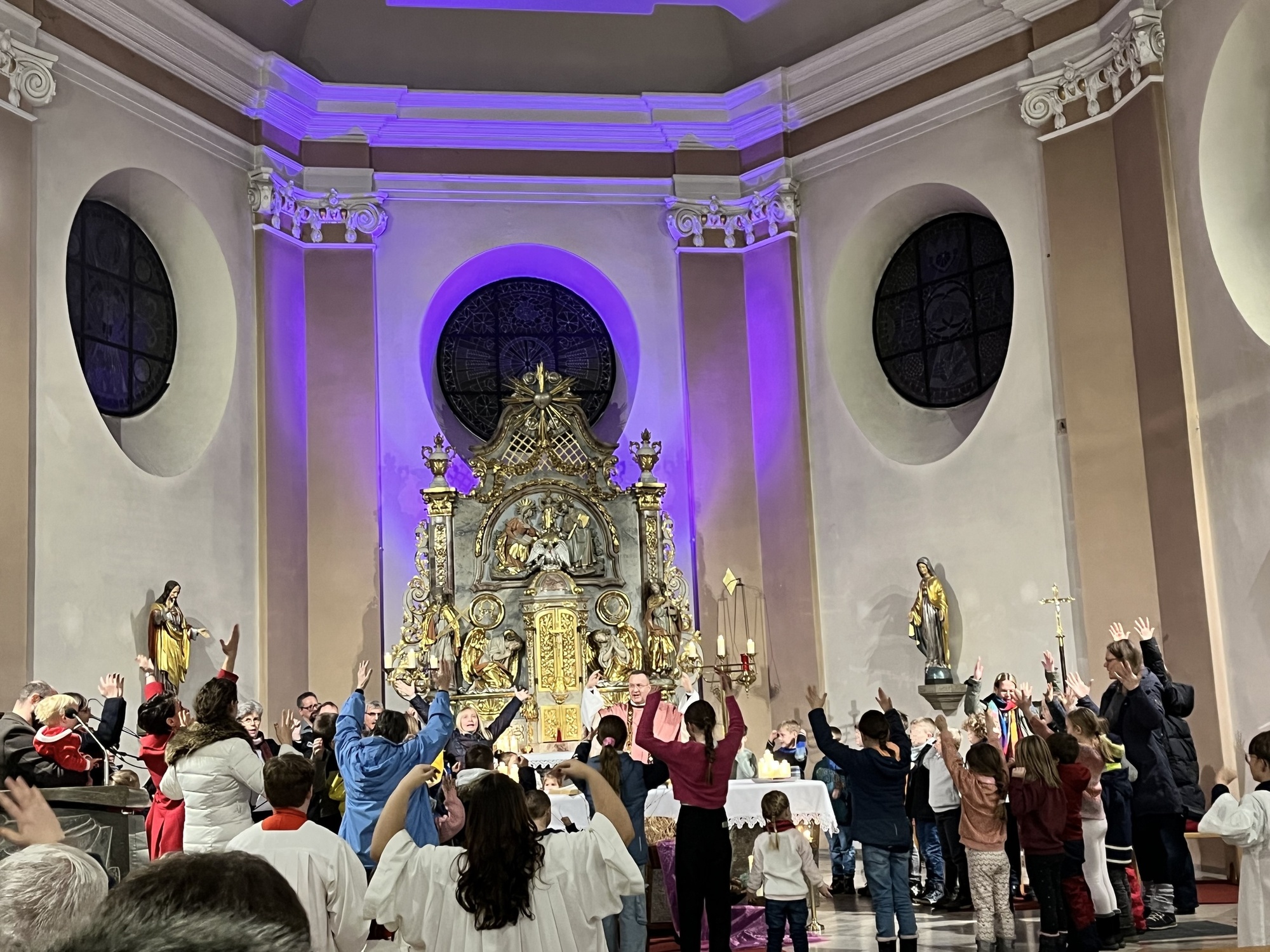 … wir in der Kirche Stille Nacht singen."