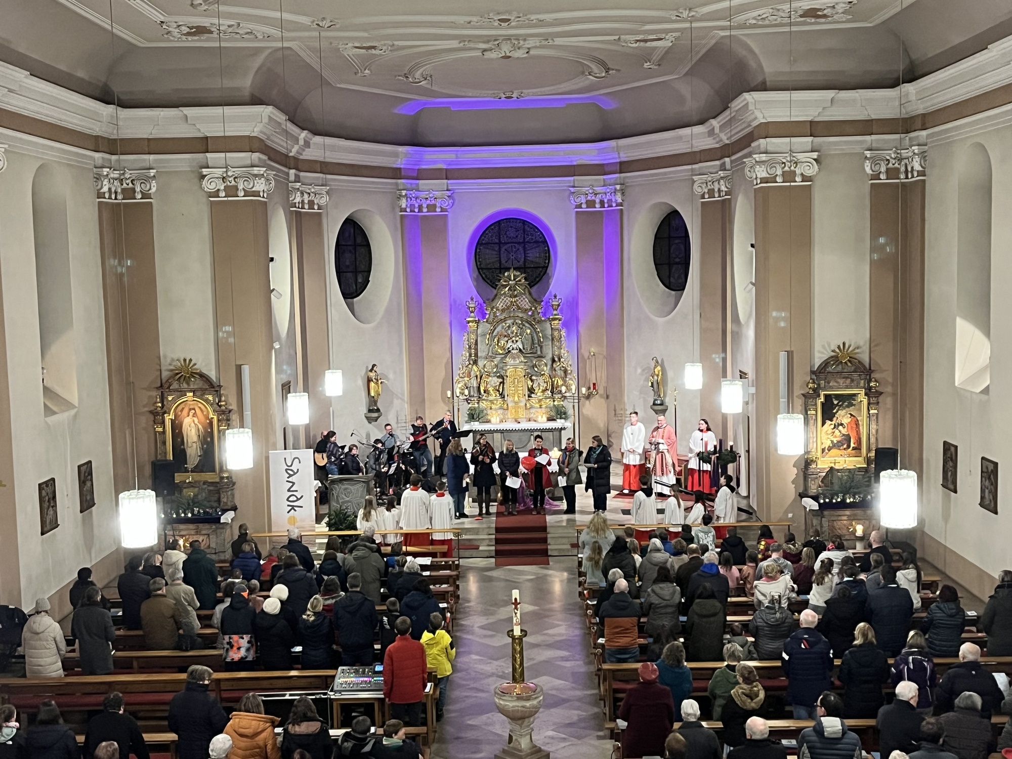 Dass der 3. Advent, die Adventswoche der Vorfreude einleitet, machte auch die Band „Sandkorn“ aus dem benachbarten Main-Kinzig-Kreis spürbar. Ein mitreißender Mix aus bekannten Liedern und eigenen Songs animierte Groß und Klein zum Mitsingen und Mittanzen. Die Kommunionkinder begleiteten unter der Anleitung des Familiengottesdienstteams mit anschaulichen Gesten voller Begeisterung das Schlusslied. Als Zugabe spielte die Band anschließend noch einige ihrer selbst geschriebenen Lieder und erntete nach jedem wohlverdienten Applaus!
