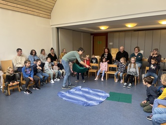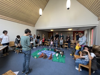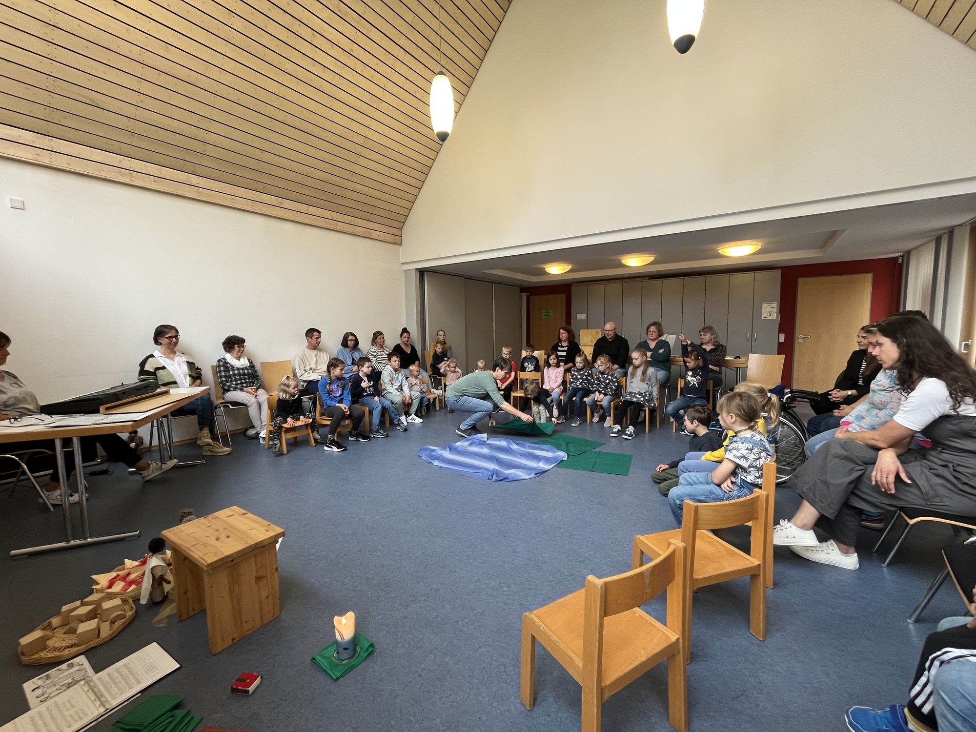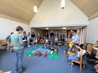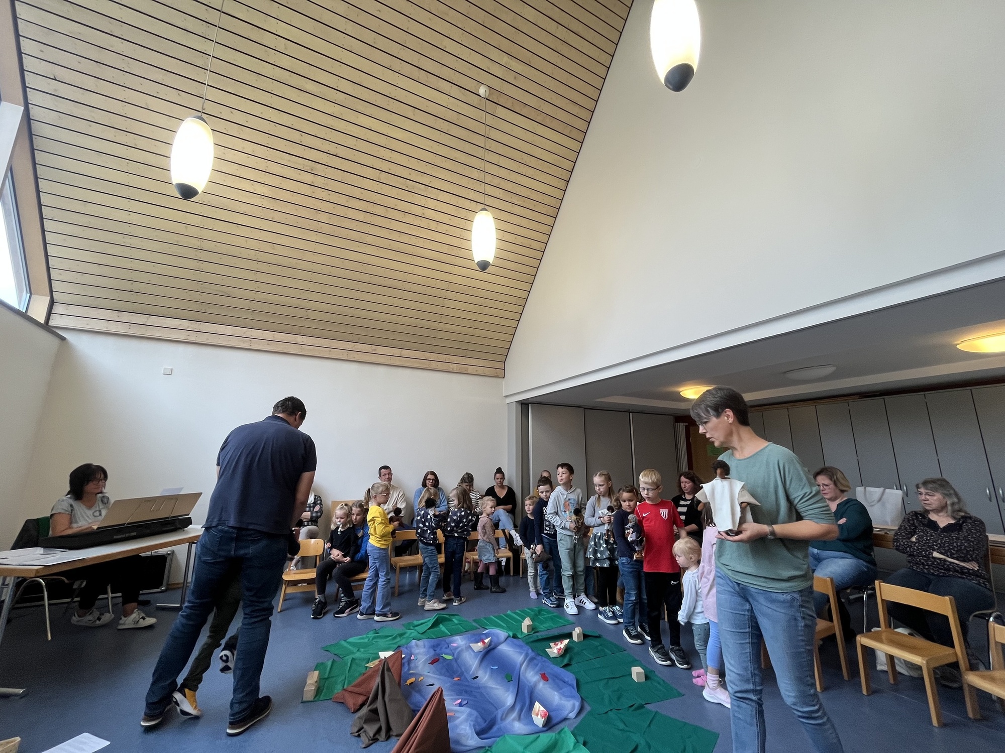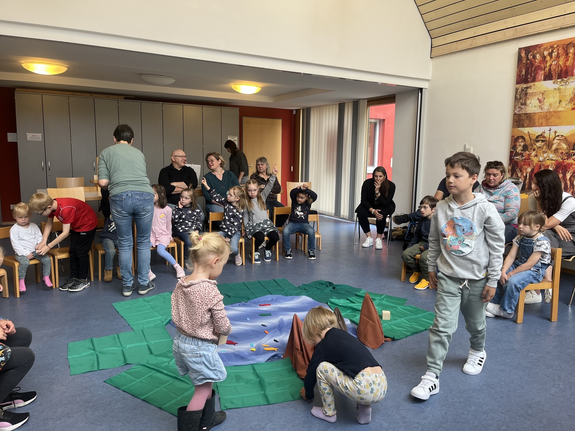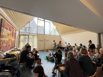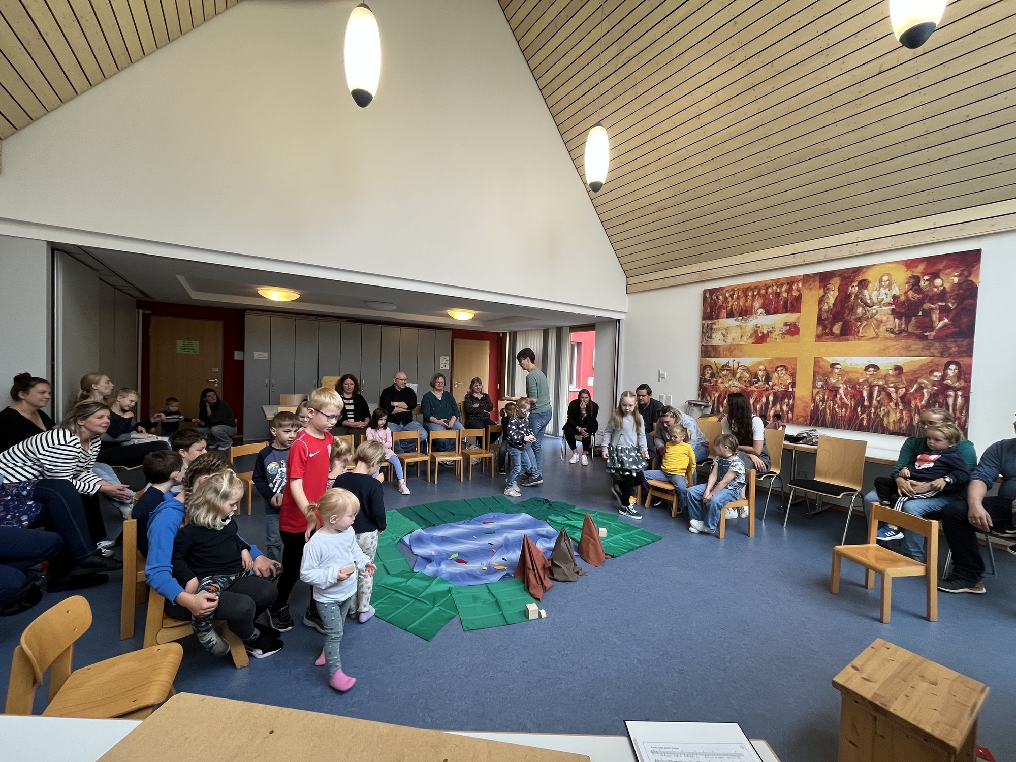 Nach der Sommerpause, freuten sich am Sonntag den 14.9. viele Familien auf die Kinderkirche. Im gut gefüllten Pfarrzentrum war das Thema: "Jesus sucht Freunde".
