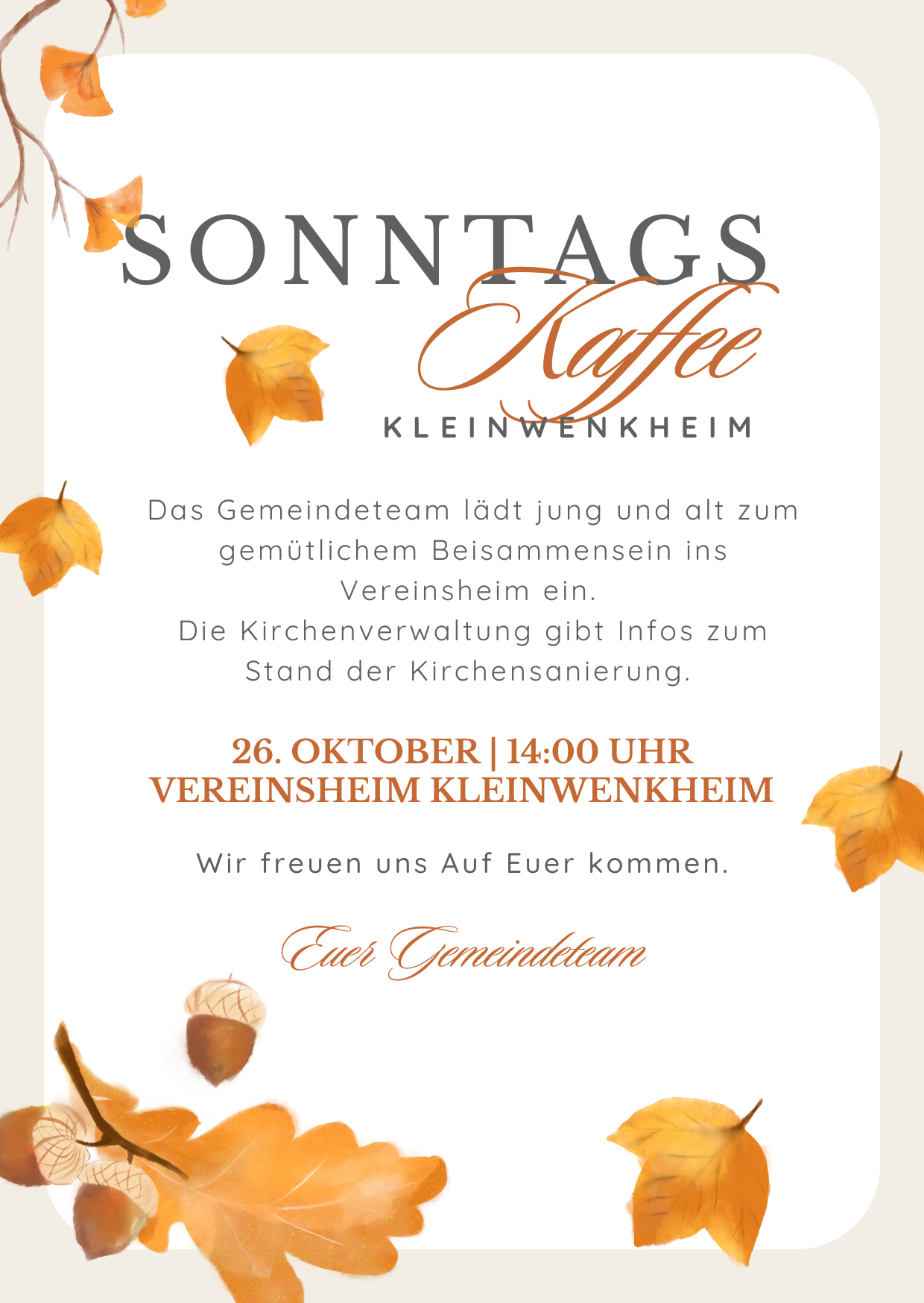 26.10.2025, 10:00 Uhr - Herzliche Einladung im Namen des Gemeindeteams Kleinwenkheim.