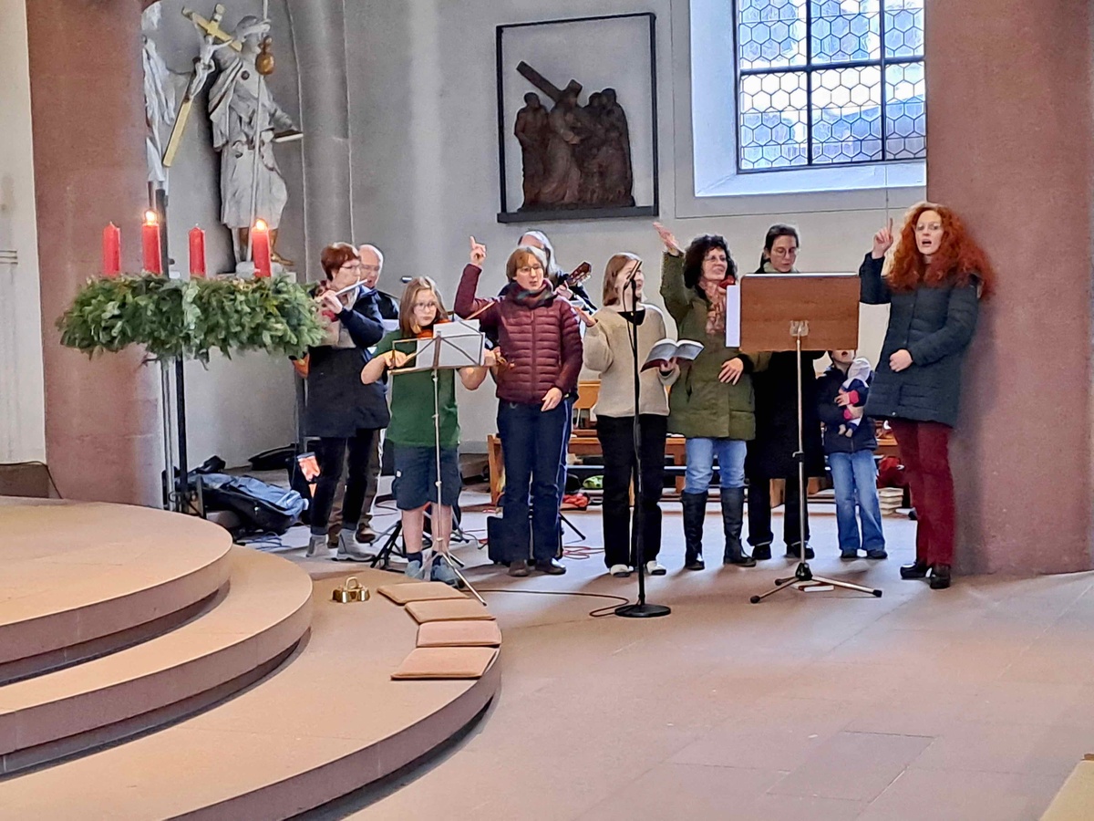 Beim Singen des „Halleluja“ kam die Gemeinde in Bewegung, denn zu der Zeile „Preiset den Herrn“ sollten alle aufstehen und sich dann wieder hinsetzen.