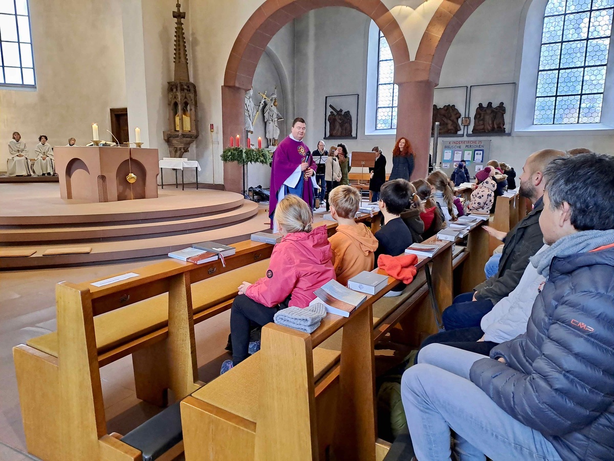 In seiner Predigt fragte der Pfarrer die Kinder, was sie vorbereiten würden, wenn sie einen guten Freund eingeladen hätten, um etwas zu feiern. Spiele, Essen und Trinken, erwiderten die Kinder. Johannes der Täufer habe die Menschen dazu aufgerufen, dem Herrn den Weg zu bereiten, ihm die Straßen zu ebnen, so der Pfarrer. Dies bedeute nicht, dass die Menschen für Jesus eine Straße bauen sollten, sondern dass sie sich in der Adventszeit genau wie die Kommunionkinder auf die Begegnung mit Jesus innerlich vorbereiten sollten. Jesus wolle als guter Freund mit uns durchs Leben gehen; dies sei bei Jesus nicht so einfach wie bei anderen Freunden; wir müssten leise sein, um seine Stimme zu hören. Er spreche zu unserem Herzen und unserem Gewissen. Um eine Freundschaft zu pflegen, bedürfe es einer gewissen Regelmäßigkeit. Dies erfordere, etwas über Jesus und darüber zu wissen, wie ein Gottesdienst funktioniere. In der Vorbereitung sollten die Kommunionkinder Jesus besser kennenlernen, um ihn in der Hl. Kommunion gut empfangen zu können.