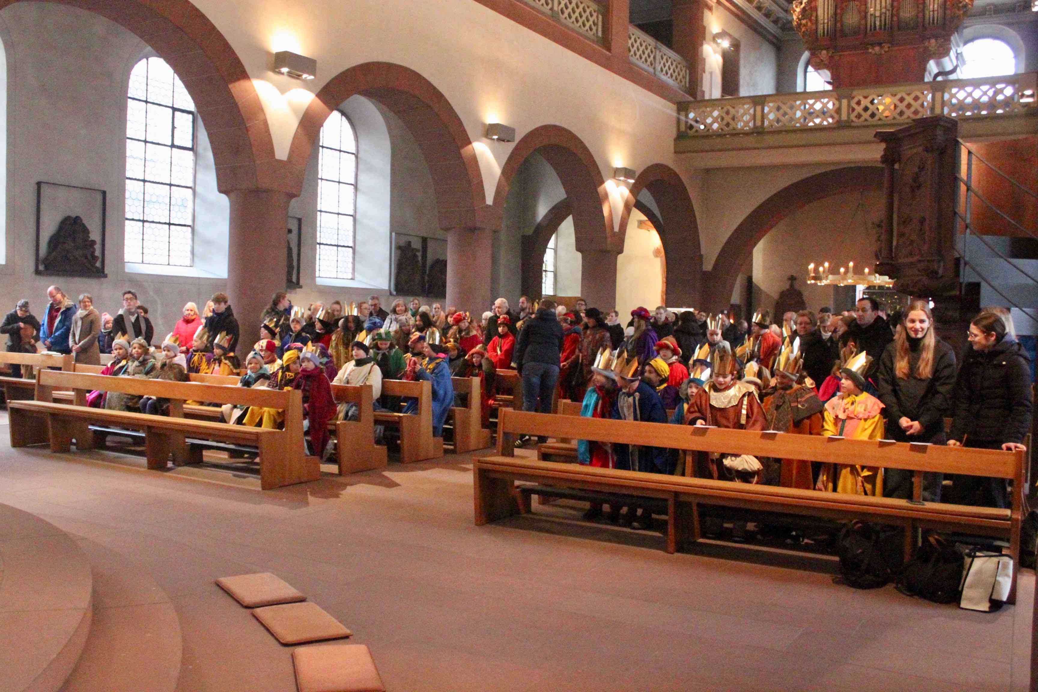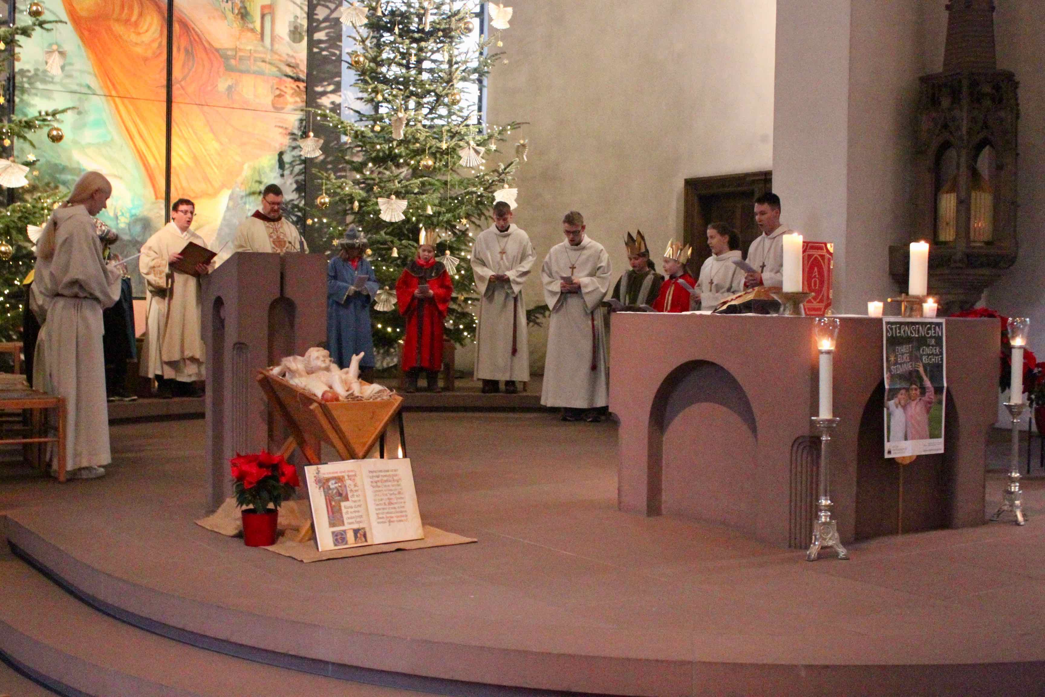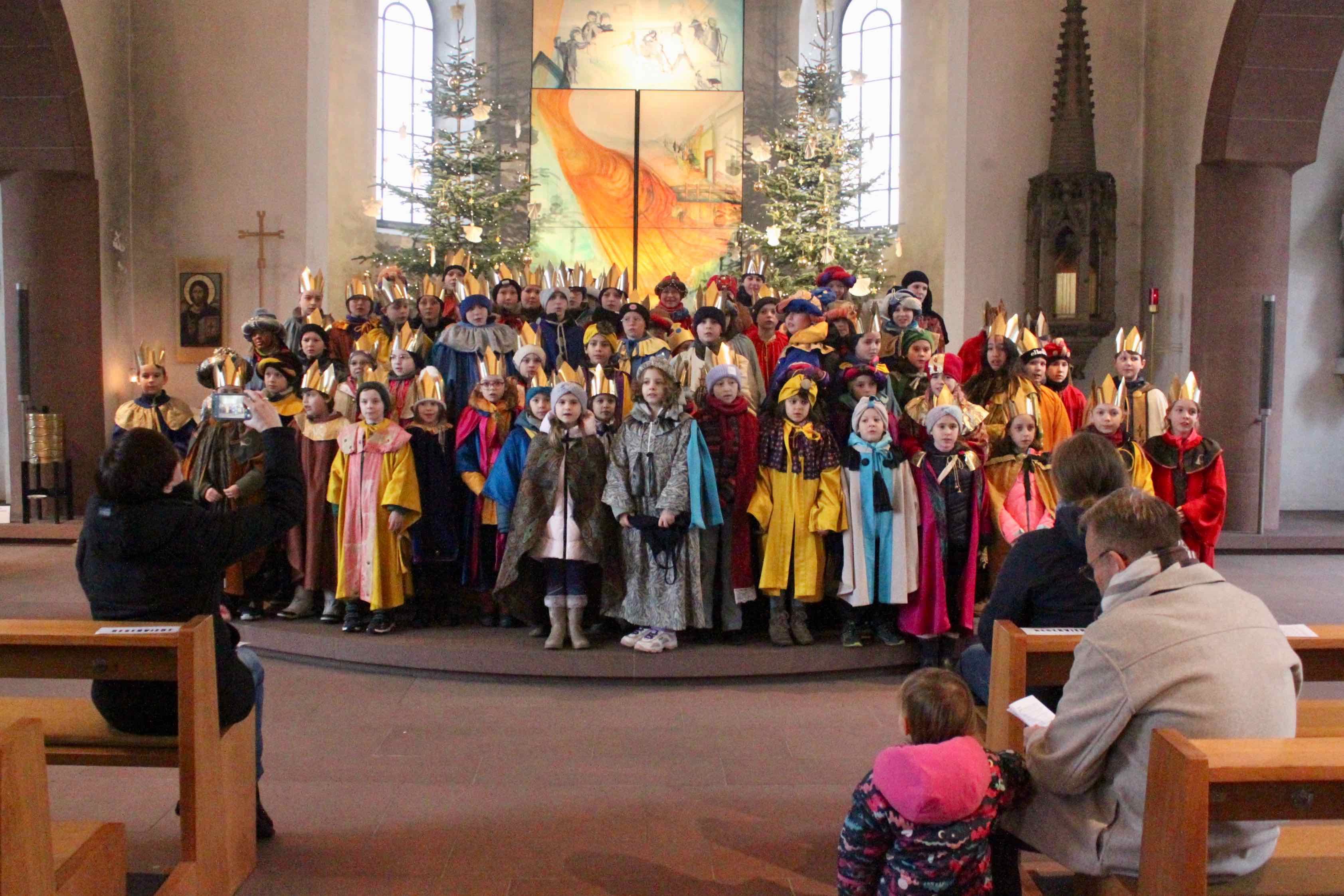 Die Sternsingeraktion sei doppelt ökumenisch, weil neben den katholischen auch evangelische und Kinder aus Bürgstadt dabei seien - viele davon bereits seit einigen Jahren. Angesichts des königlichen Besuchs in der Pfarrkirche wies Diakon Grimm auf das Evangelium hin, wonach das Jesuskind in der Krippe ebenfalls königlichen - oder besser gesagt - hohen Besuch gehabt hätte. Die Sterndeuter, die von weit hergekommen seien, hätten ein kleines Kind in einer Futterkrippe wie einen König behandelt: „Sie gingen in das Haus und sahen das Kind und Maria, seine Mutter; da fielen sie nieder und huldigten ihm “ (Mt 2,11). Dass Jesus als Kind in unsere Welt gekommen ist und er auch uns Kinder Gottes nennt, wurde in den Kyrie-Rufen der Sternsinger deutlich.