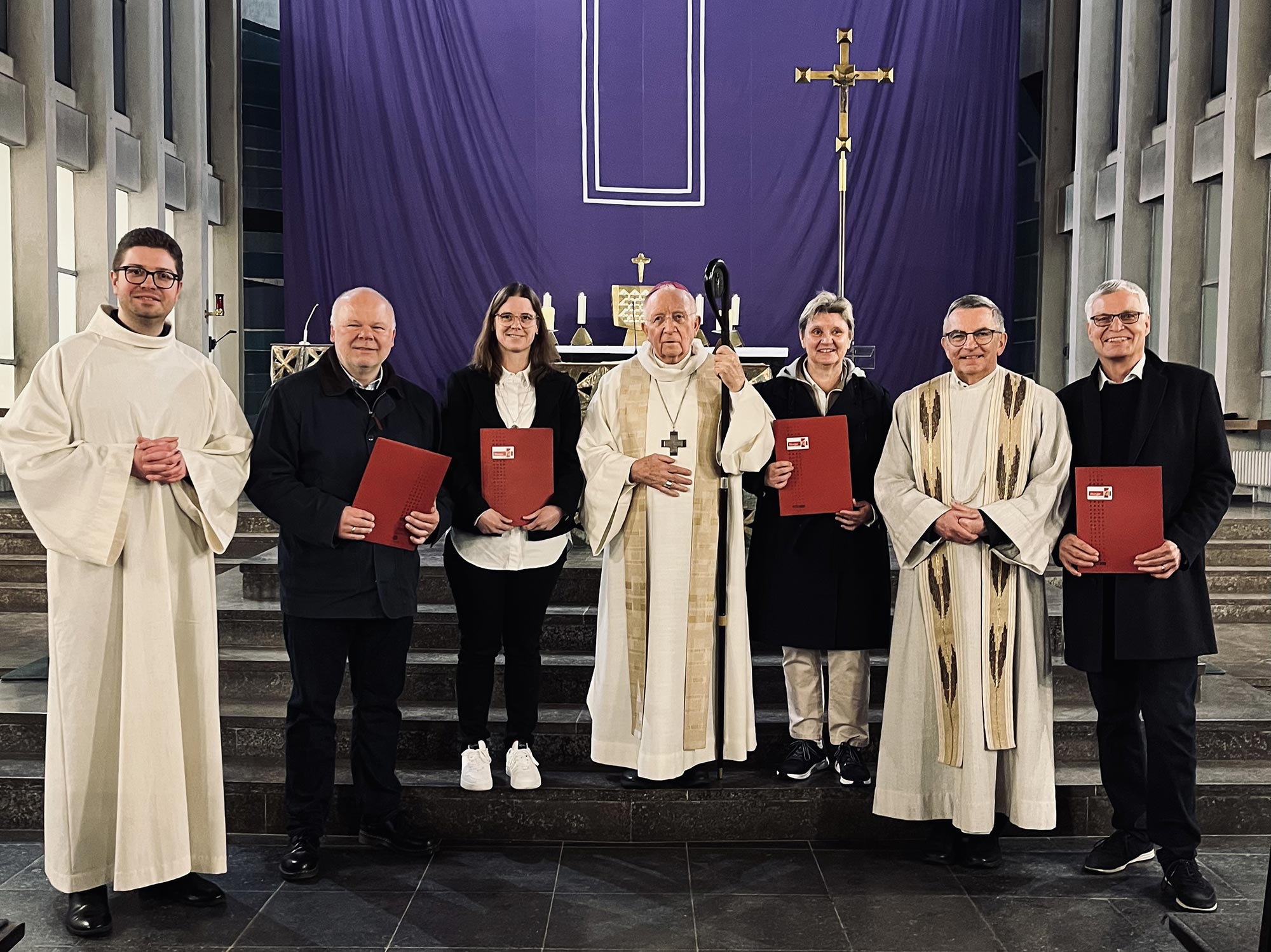 Die Urkunde erhielten Franz Josef Erb (Pastoraler Raum Würzburg Süd-Ost), Matthias Fleckenstein (Pastoraler Raum Würzburg Süd-Ost), Karin Hemberger (Pastoraler Raum Würzburg Nord-Ost) und Kerstin Hertle (Pastoraler Raum Kitzingen). Krankheitsbedingt konnten Julia Drangmeister-Gawlas und Beate Maria Nürnberger (beide Pastoraler Raum Würzburg Nord-Ost) nicht an der Feier teilnehmen. Sie erhalten die Beauftragungsurkunde zu einem späteren Zeitpunkt.