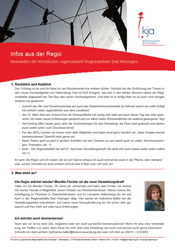 Außerdem: Die Regionalstelle durfte am 01. April ihre neue Verwaltungskraft begrüßen! Hier stellt sie sich euch vor!