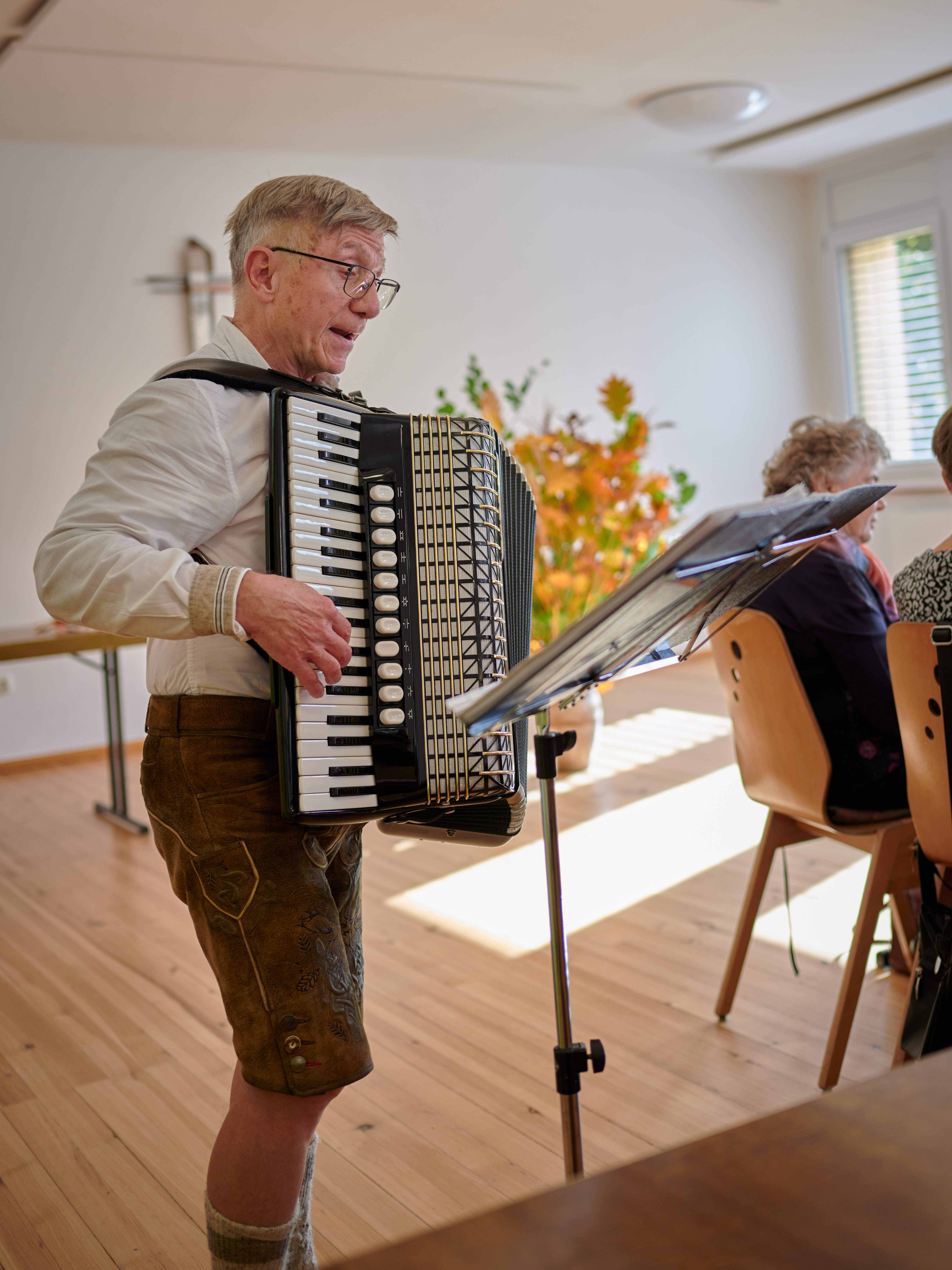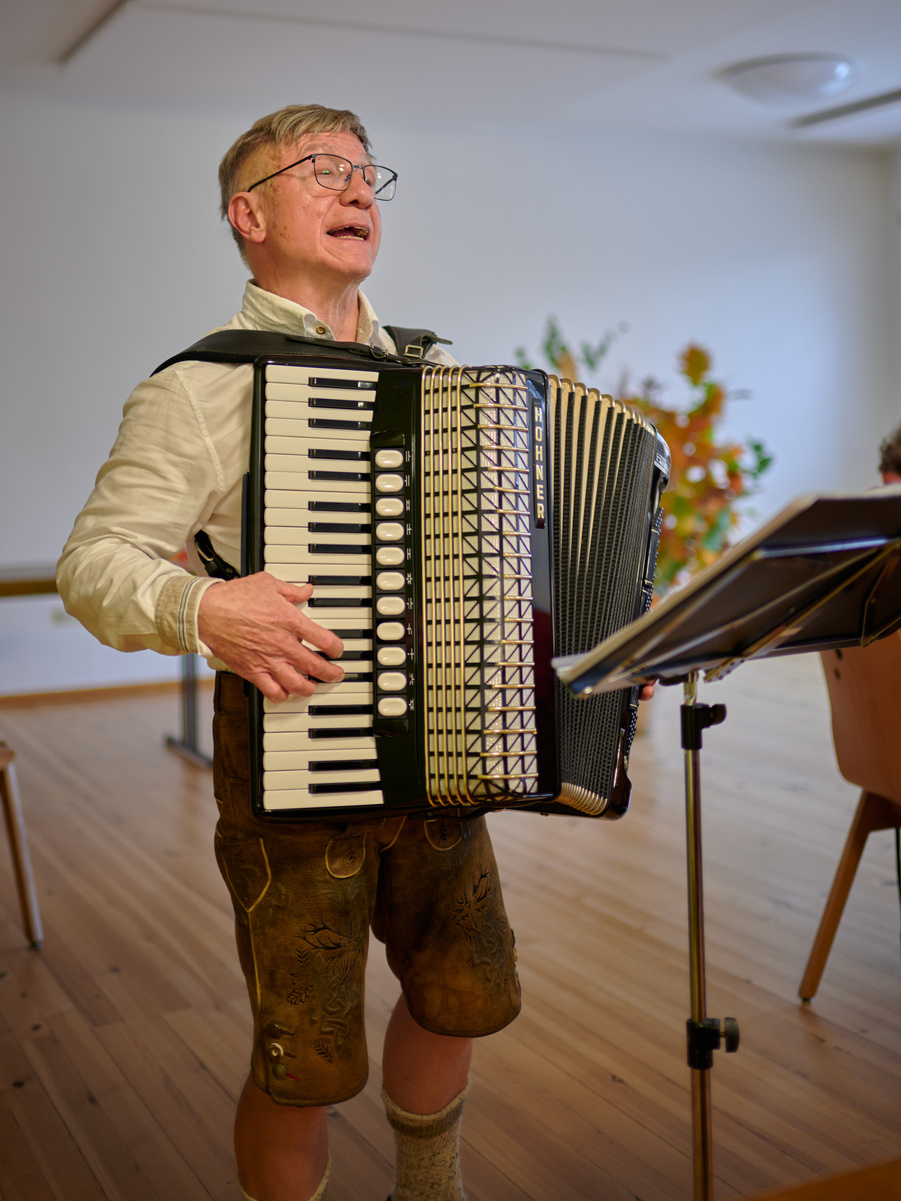 Nach Kaffee und Kuchen ging es sogleich musikalisch los. Von der Waterkant über unsere schöne fränkische Heimat, bis nach Kufstein ging die Reise. Alte deutsche Volkslieder, bis hin zu dem Evergreen,“ aber dich gibt’s nur einmal für mich“, rundeten das Programm ab.