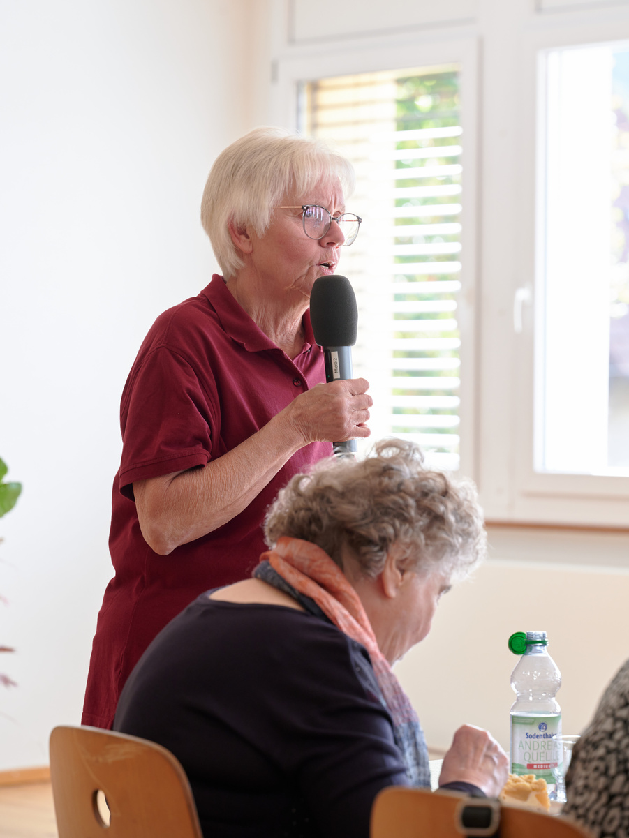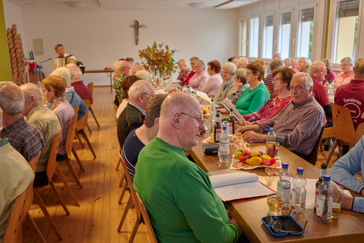 Im voll besetzten Saal des Pfarrheims in Kirchzell begrüßte Maria Schöllig alle anwesenden Seniorinnen und Senioren. Ihr ganz besonderer Gruß galt Herrn Peter Horn, der uns mit seinem Akkordeon begleitet hat.