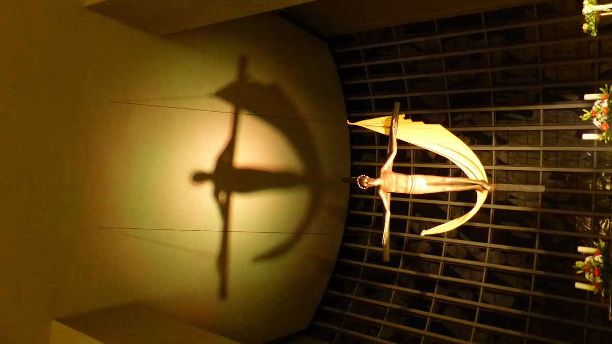 Die Osternacht stand zunächst ganz im Zeichen der Vorbereitungen: Der Ablauf der Liturgie wurde durchgesprochen, Texte verteilt. Eine große Bereitschaft war bei den Jugendlichen da, sich in der Liturgie aktiv einzubringen. Ein Mitgebsel wurde gebastelt, die Band probte, die Kirche wurde soweit gerichtet, dass alles an Ort und Stelle stand. Dann war aber auch Zeit für die persönliche Vorbereitung: Kerze basteln, bei einem Impuls sich selbst noch einmal im Spiegel betrachten und das Lied hören: „Leg mein Gesicht frei, mach mich schön!“ Eine kleine Gruppe wachte durch die ganze Nacht, die durch die Zeitumstellung eine Stunde verkürzt war. Um halb sechs war es endlich soweit. Die Liturgie beeindruckte durch viele Bilder und Bewegungen, die die liturgischen Texte unterstrichen, interpretierten oder in einem neuen Blickwinkel sehen ließen. Die auch die Erwachsenentaufe war ein beeindruckendes Zeugnis eines jungen Mannes für den Glauben.