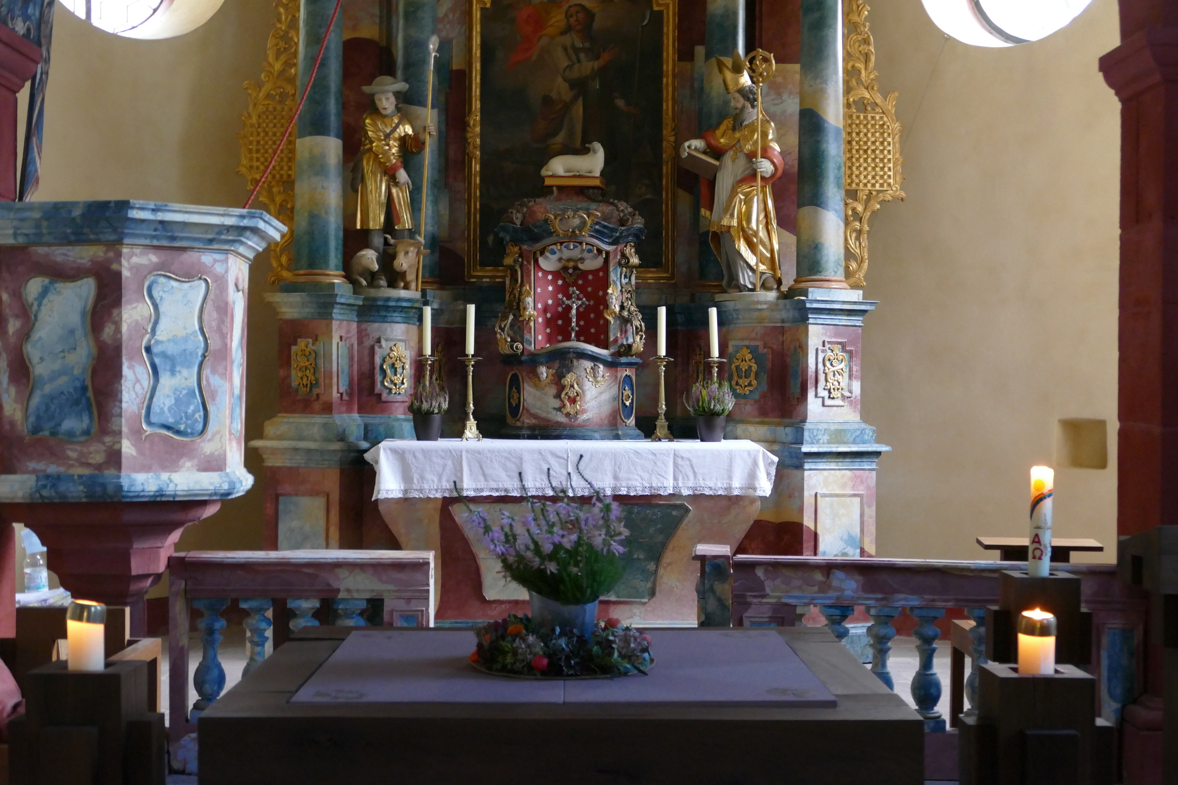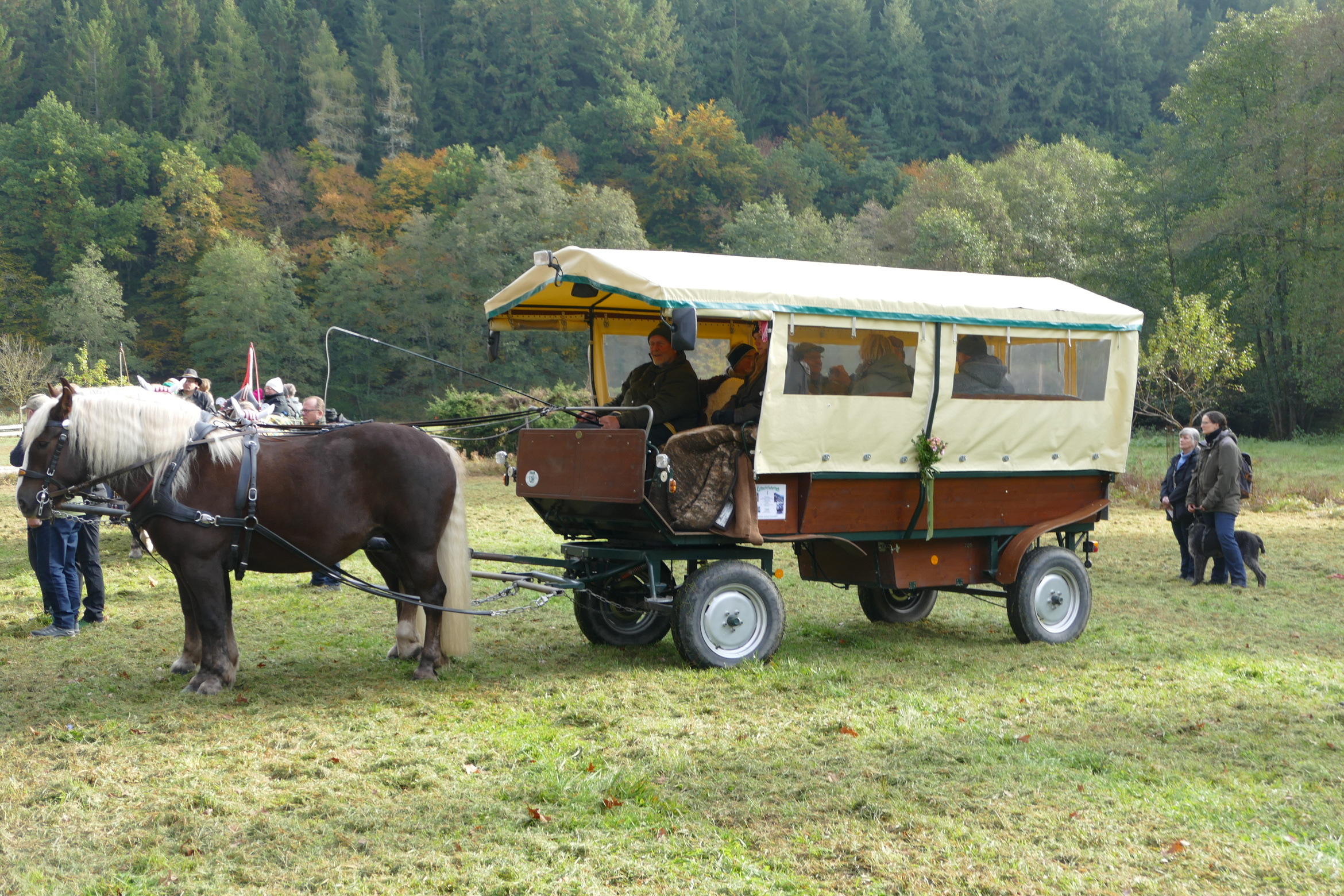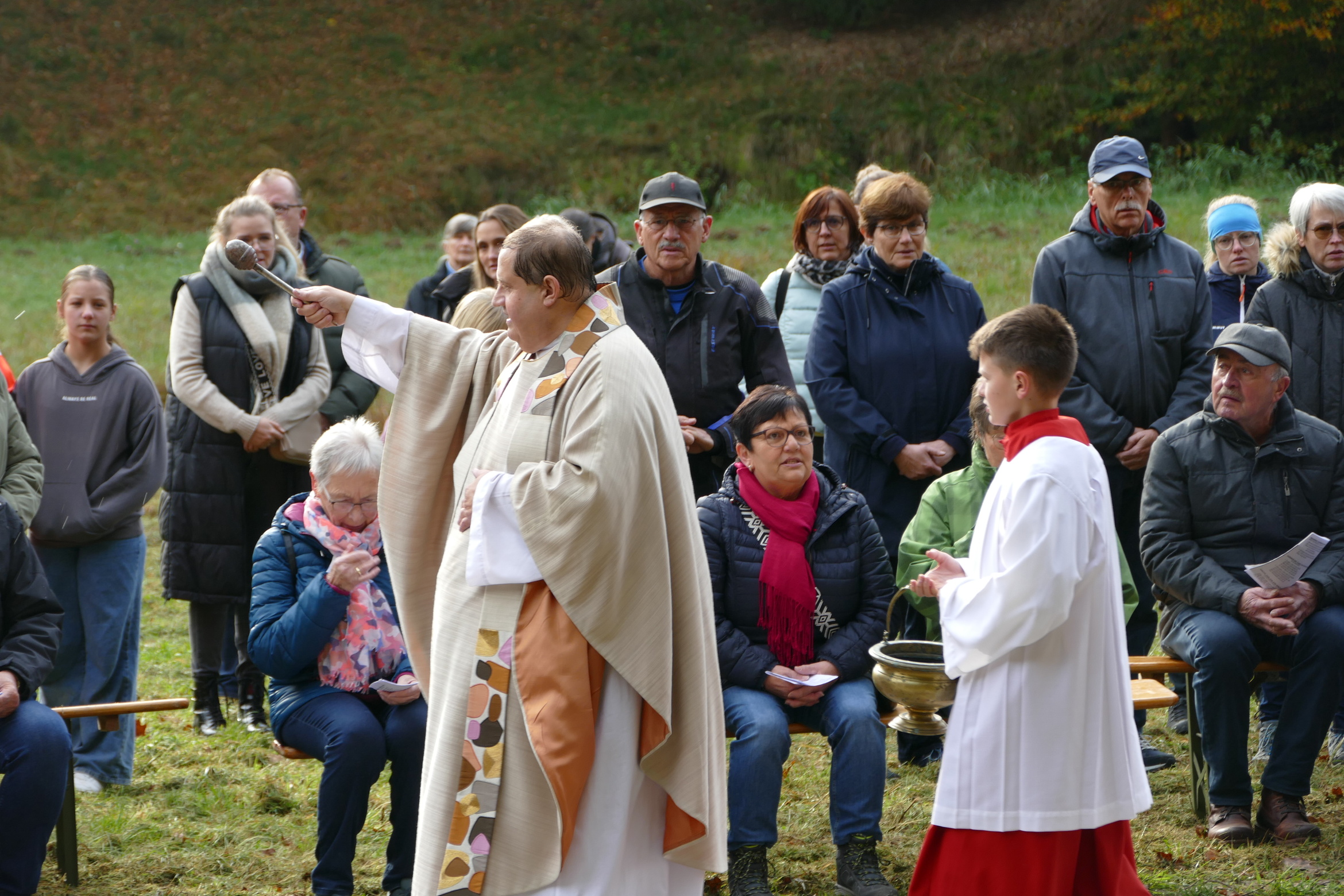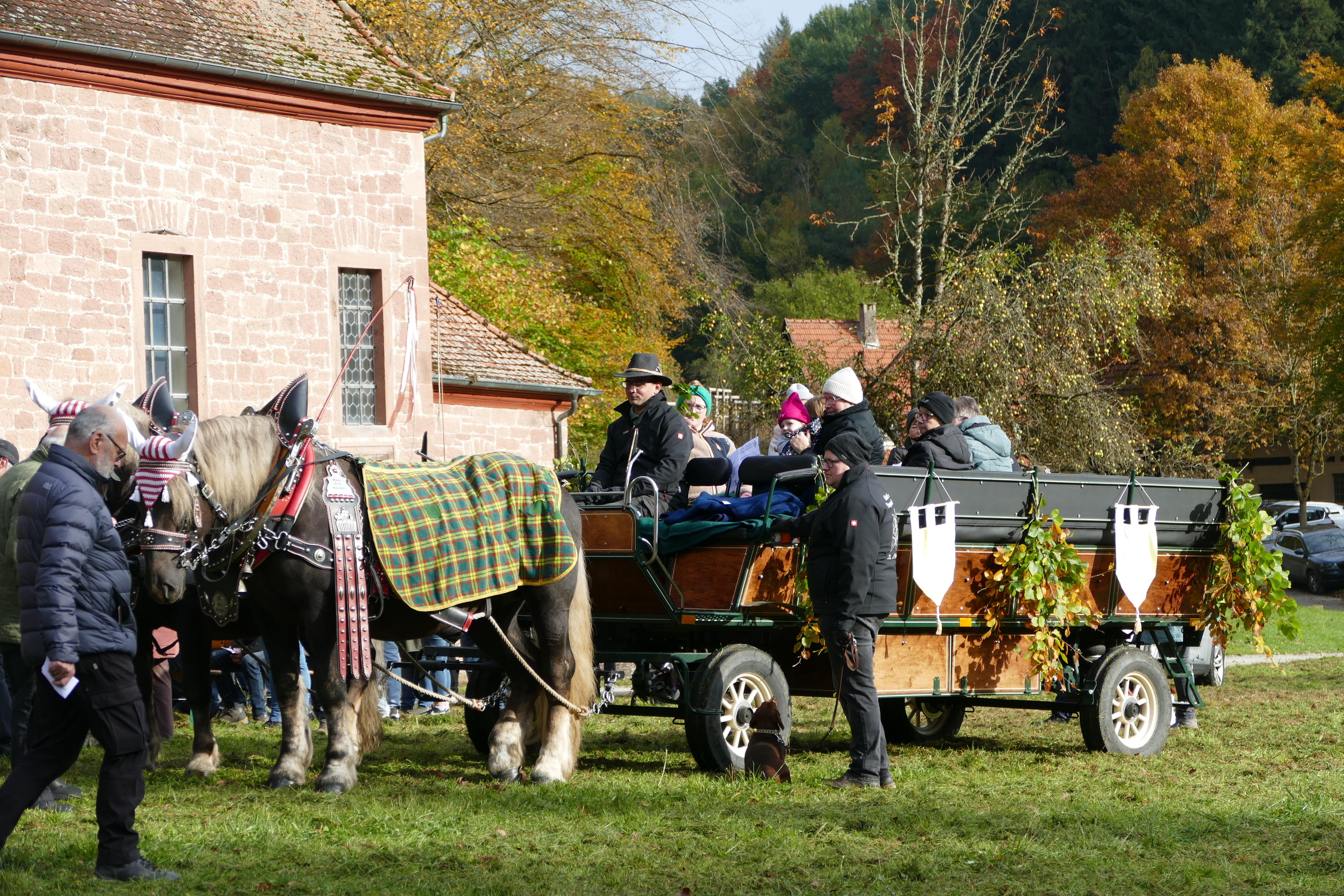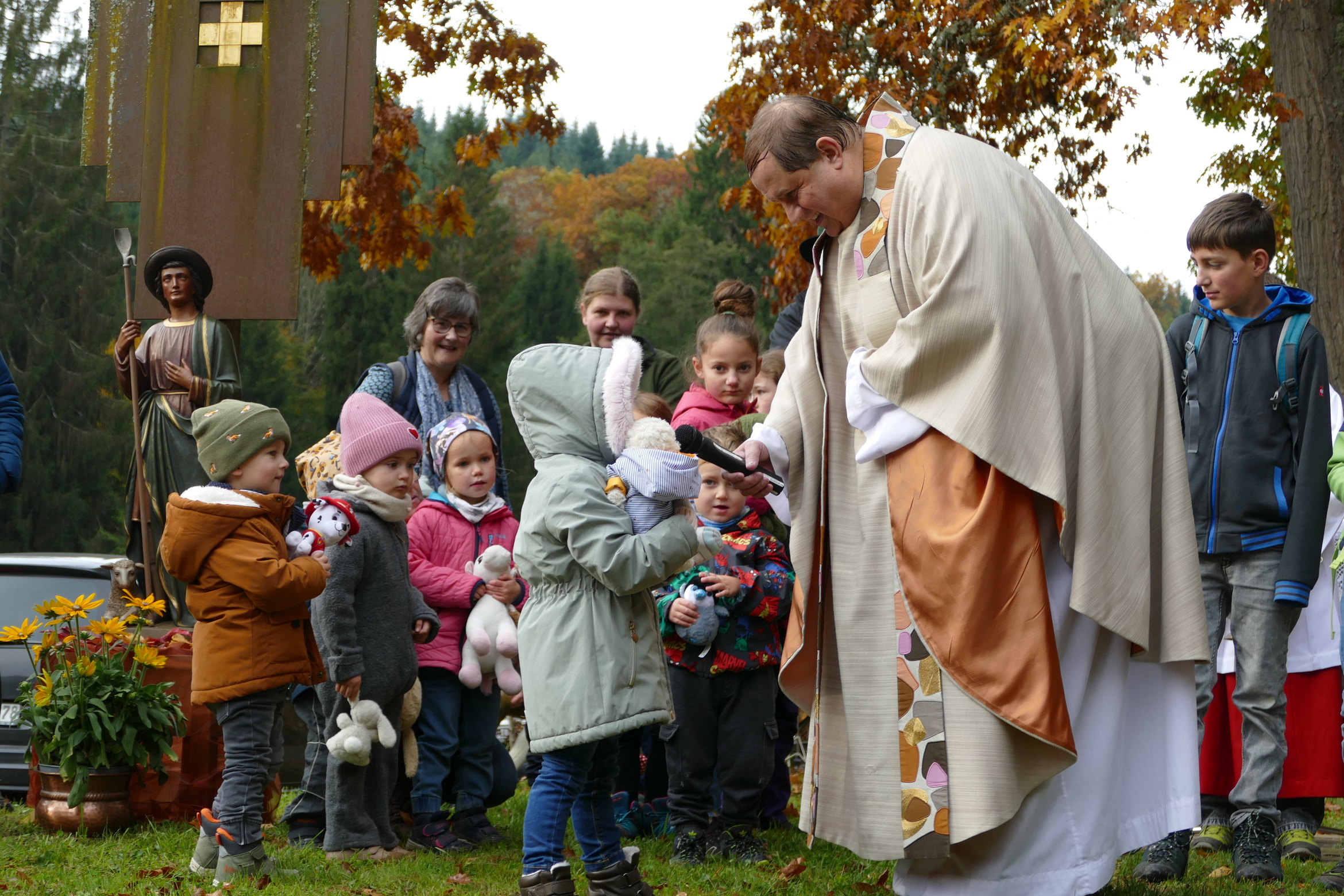 Zu Ehren des Kirchenpatrons von Breitenbach, dem heiligen Wendelin, sind am Sonntag, 19. Oktober viele hundert Menschen nach Breitenbach gekommen. Ebenso haben sich Reiter zum festlichen Gottesdienst und zum Segnen der Tiere aufgemacht. Prachtvolle Kutschen, viele Hunde, und auch andere kleinere Tiere waren auf der großen Wiese neben der Kirche versammelt. Pfarrer Wöber begrüßte die vielen Familien mit Kindern, die ihre Plüschtiere mitbringen und im Gottesdienst vorstellen durften. In der Predigt erinnerte Pfr. Wöber an das Vorbild des heiligen Wendelin in seinem Umgang mit Tieren und Mitmenschen nach dem Beispiel des Guten Hirten Jesus Christus. Die Musikkapelle Watterbach / Breitenbuch unter der Leitung von Christian Trunk umrahmte den Festgottesdienst musikalisch.