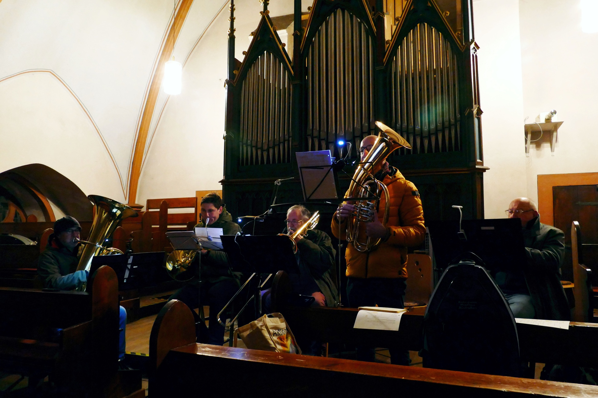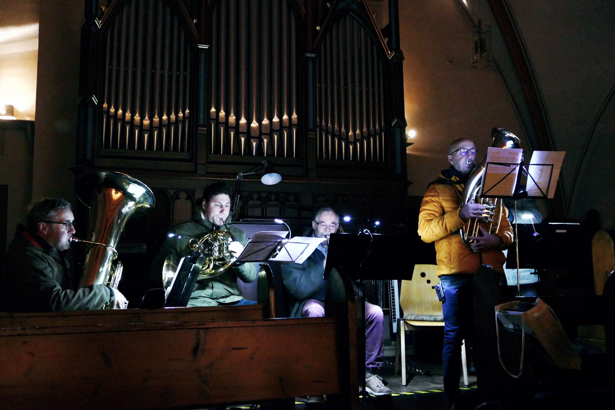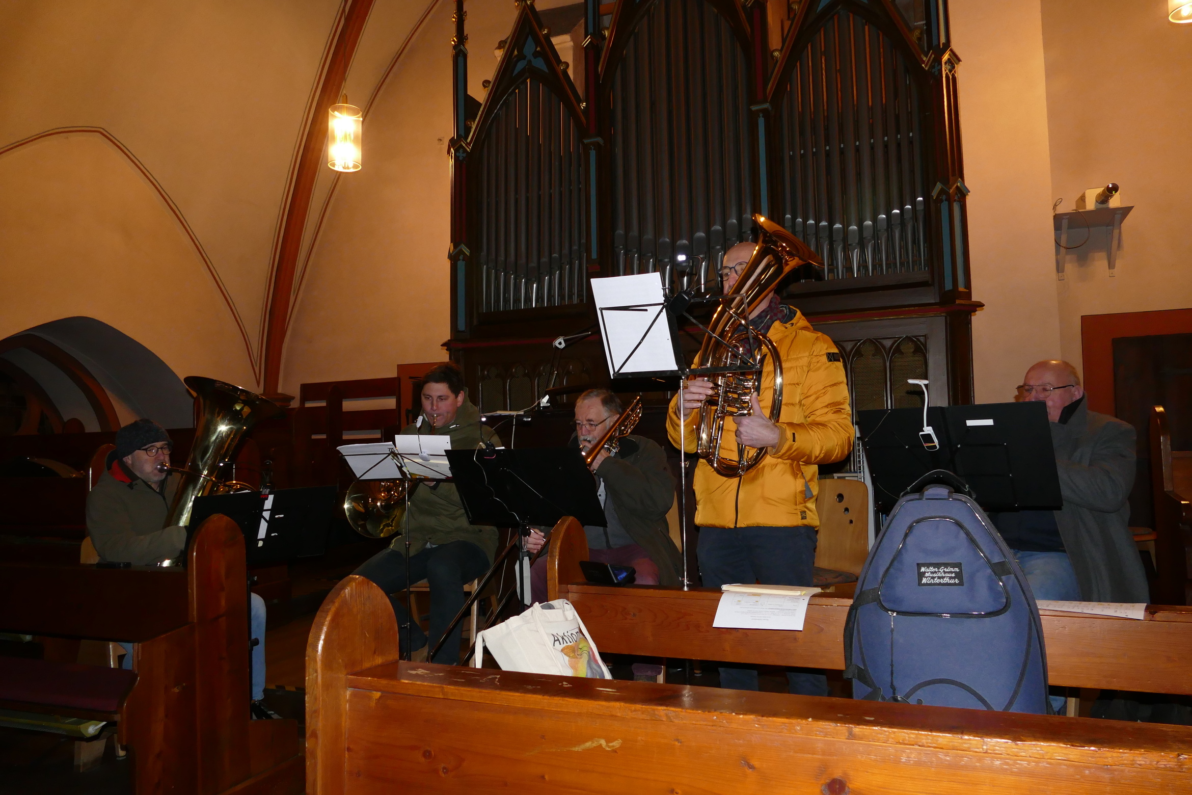 Die adventlichen Lieder wurden kräftig mitgesungen und die Blechbläser brachten einige Stücke instrumental zu Gehör.