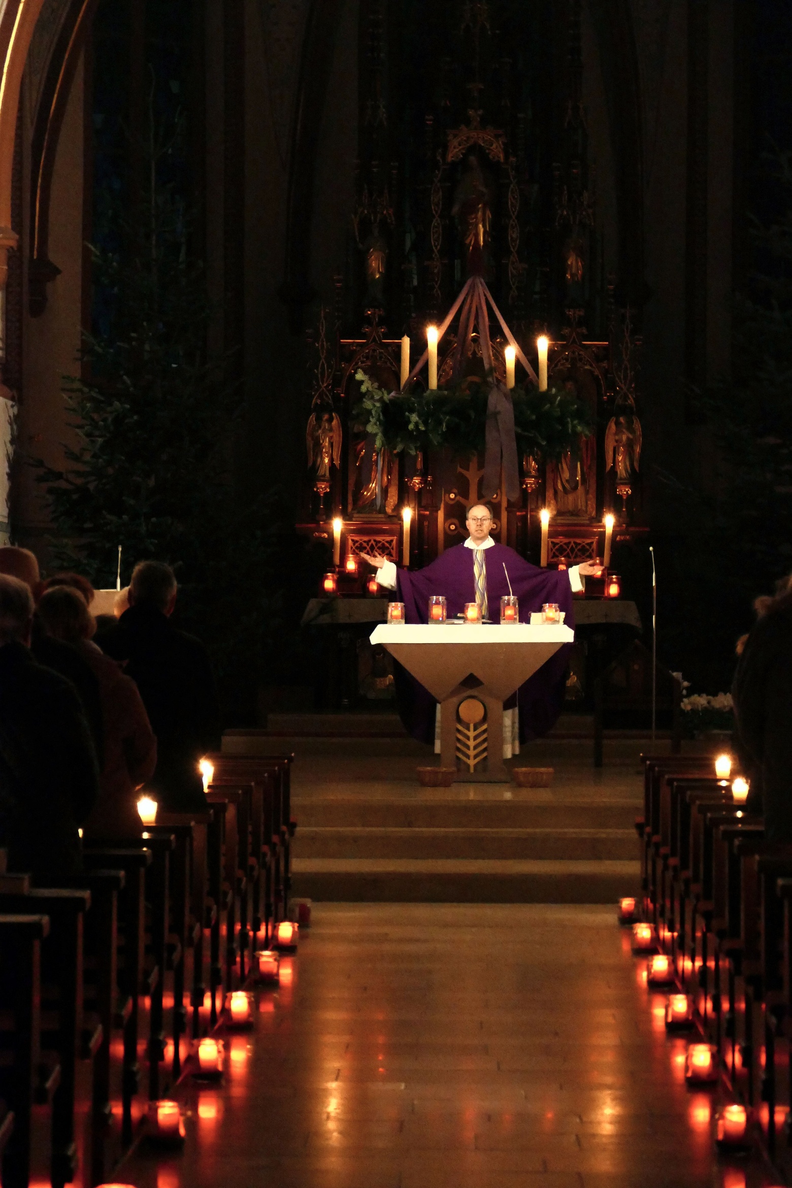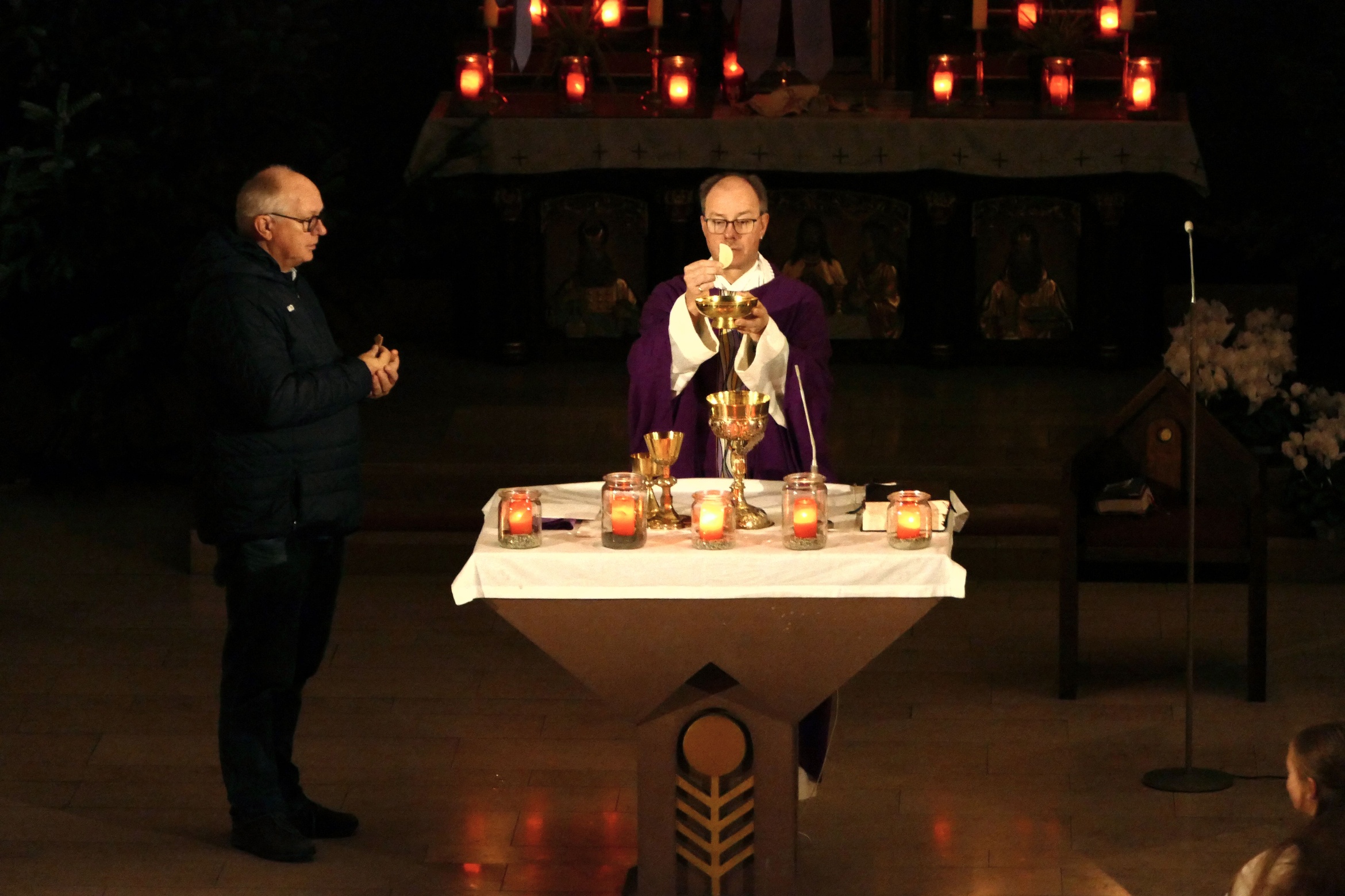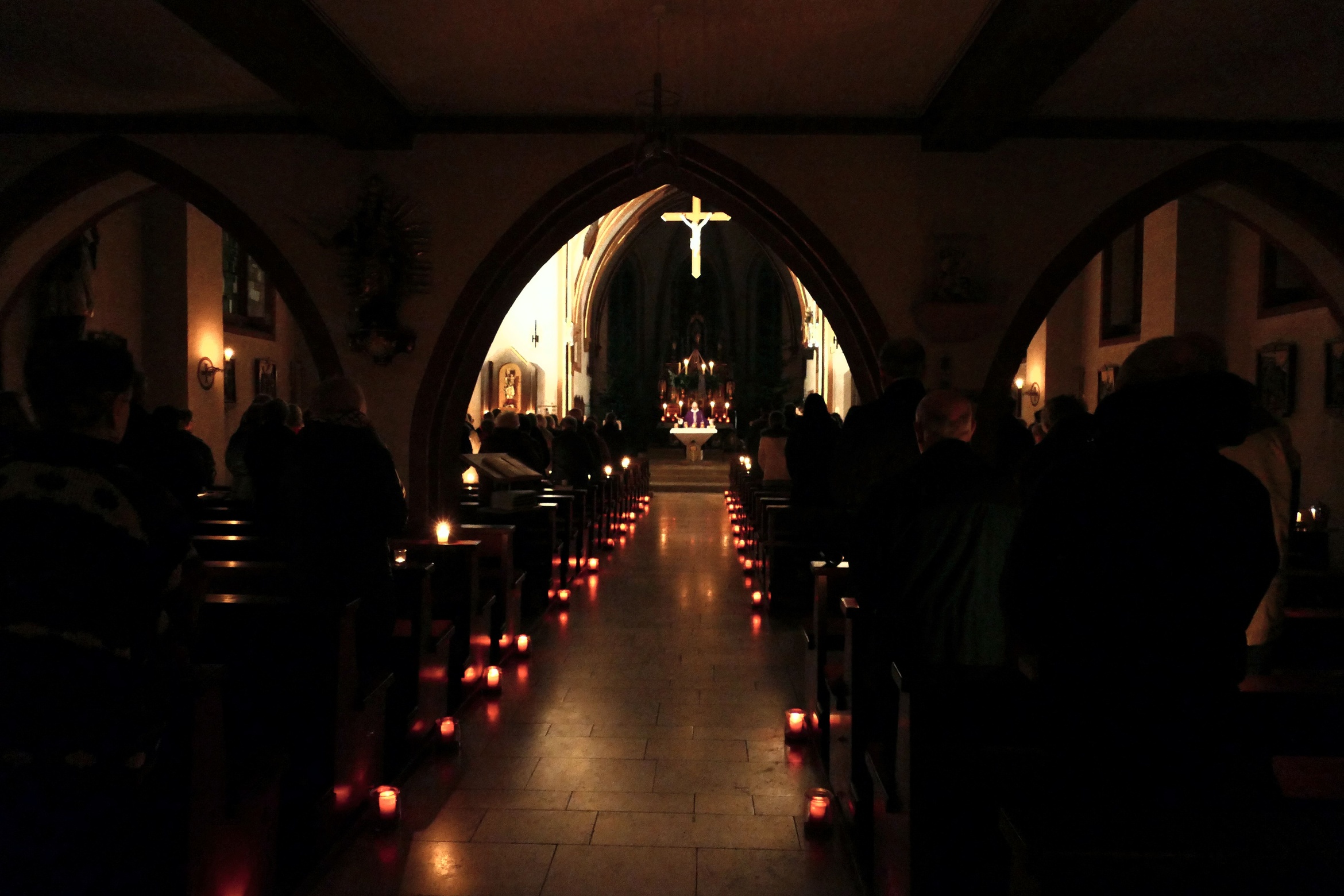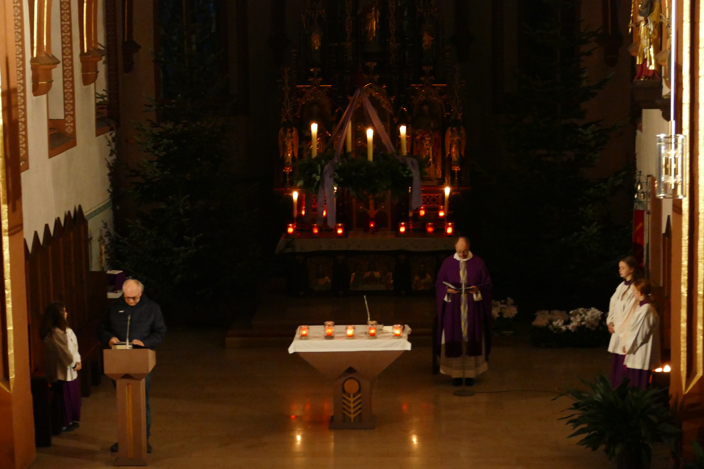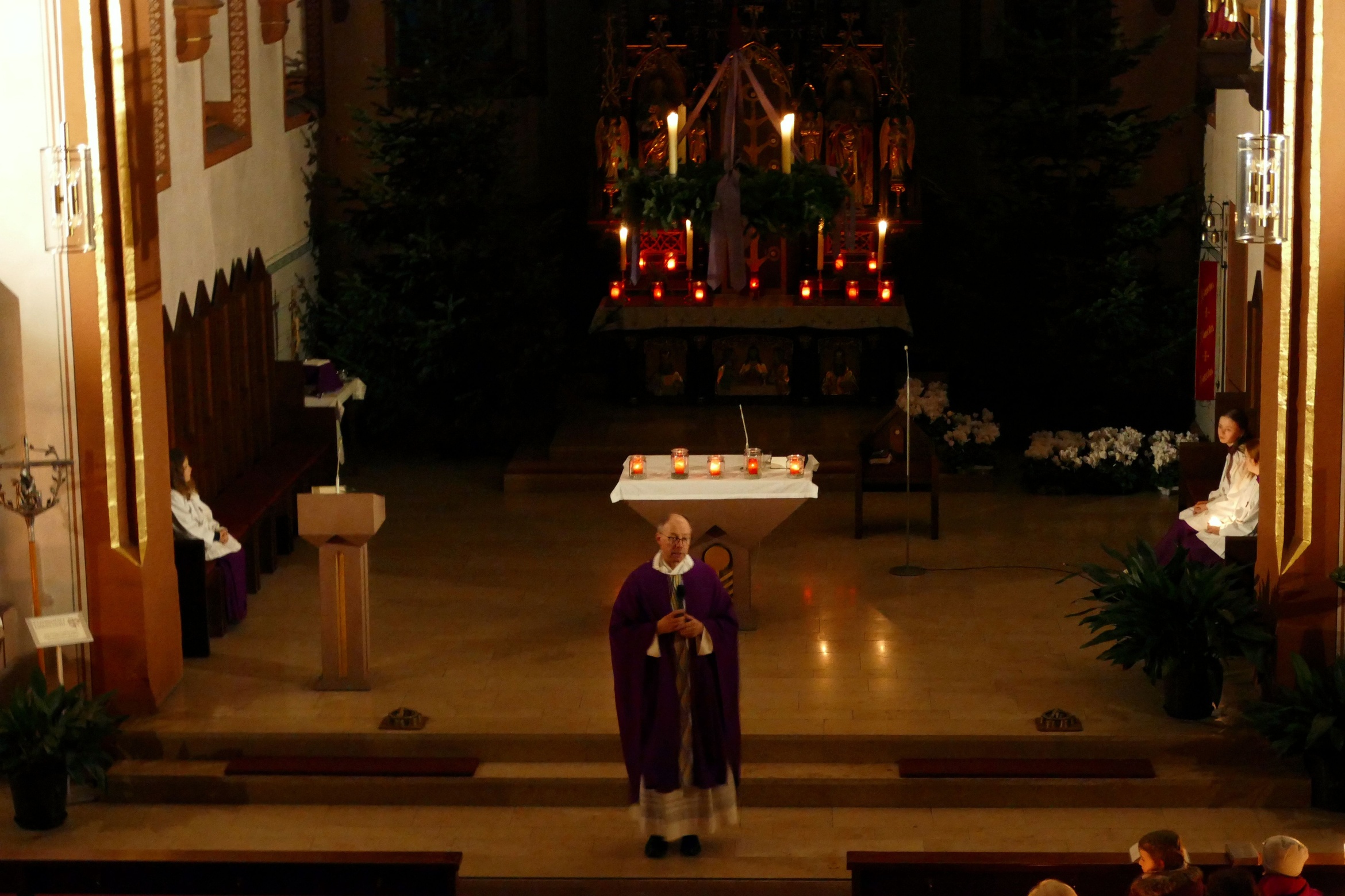 Feierlich umrahmt und mitgestaltet vom Weilbacher Kirchenblech wurde der dritte Rorate Gottesdienst in der Pfarrkirche Kirchzell. Im warmen Licht vieler Kerzen konnte Pfarrer Michael Prokschi zahlreiche Gottesdienstbesucher begrüßen, darunter auch viele Kommunionkinder mit den Familien, ebenso Mitfeierende aus dem ganzen pastoralen Raum Amorbach. Maria und Elisabeth, die Begegnung der beiden Frauen stand im Mittelpunkt der Gedanken als Impuls in den Tag.