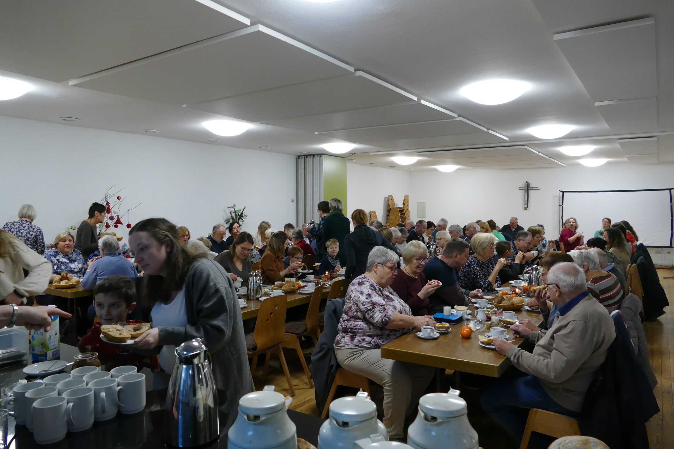 Nach dem gemeinsam Gottesdienst war im Pfarrheim alles liebevoll vorbereitet und knapp 100 Personen kamen zum Frühstück zusammen.
