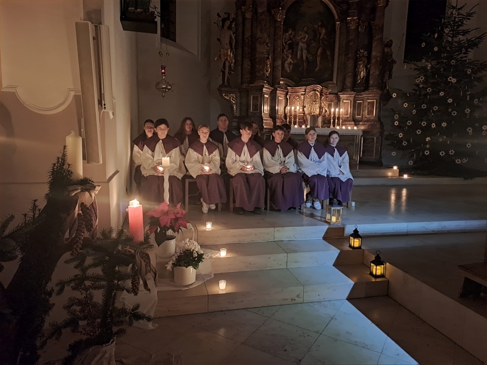 Erwähnenswert ist auch, dass sehr viele Ministranten, einmal waren es elf Frühaufsteher, den Gottesdienst begleiteten und Dienst leisteten.