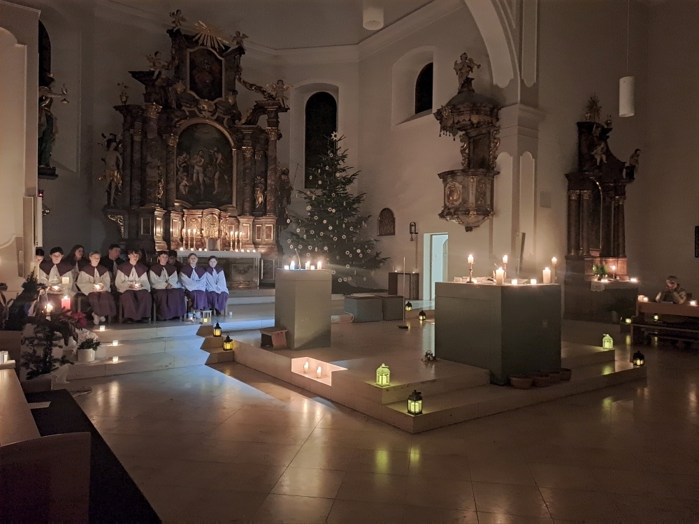 Pfarrer Rettinger und Pfarrer Simon feierten zusammen mit zahlreich gekommenen Gläubigen die verschiedenen Messen und erklärten dabei in kurzen Ansprachen den Begriff "Rorate"
