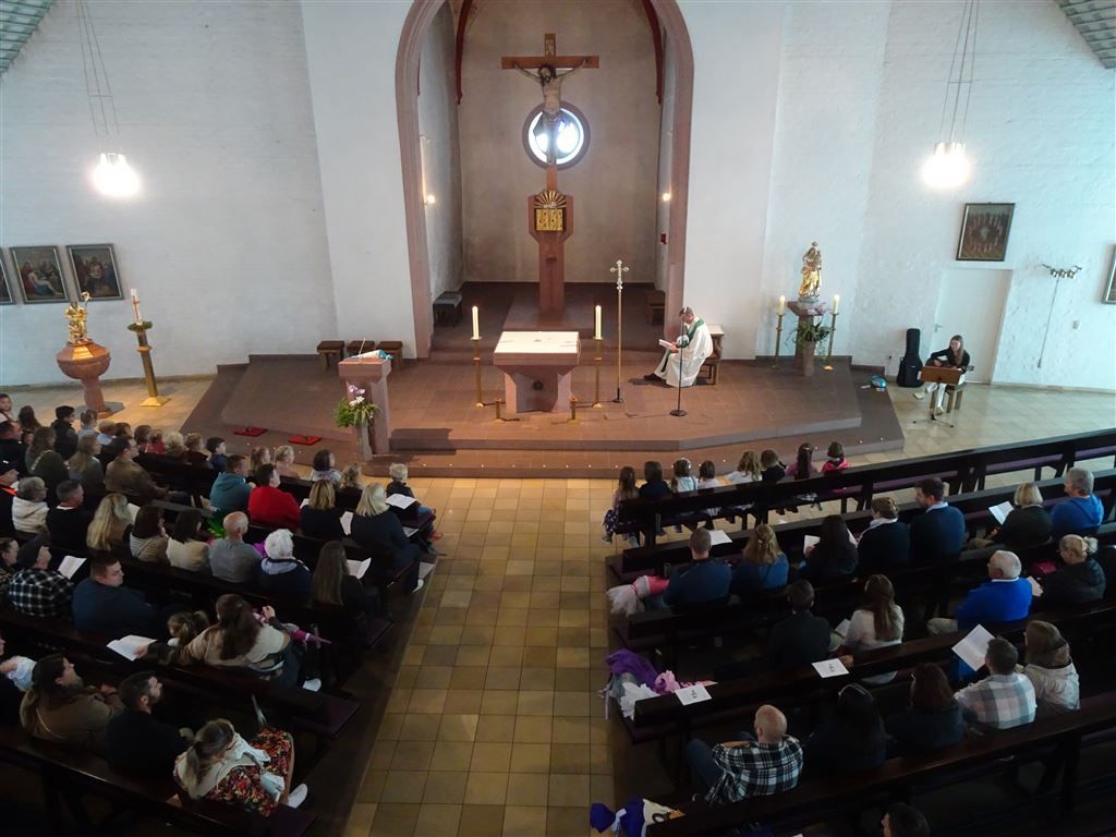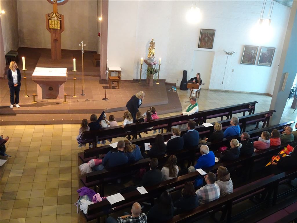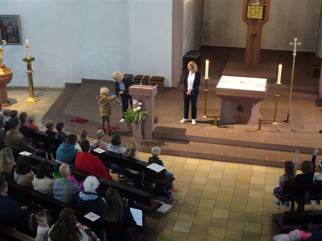 Auf der Empore haben neugierige Zaungäste das Geschehen gespannt verfolgt, die Vorschulkinder vom Kinderhaus. Schließlich möchte man ja wissen, was nächstes Jahr auf einem zukommt. Damit das letzte Jahr im Kindergarten gut verläuft, bekamen sich auch einen Segen mit auf den Weg.