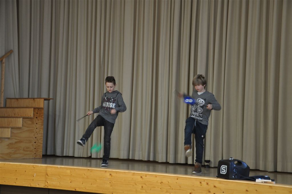 Begrüßt wurden alle mit einem tollen Showakt von zwei Jungs mit „Diabolos“ in der Sporthalle. Eine Vielzahl an ganz verschiedenen Workshops, die von den HelferInnen der Kirchlichen Jugendarbeit Würzburg (kja) gut vorbereitet waren, standen auf dem Programm.